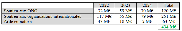 Humanitarian aid for Ukraine From the first day of Russia’s war of aggression, 24 February 2022, France has been supporting Ukraine and the neighbouring countries hardest hit by the conflict. As of 1 September 2024, it had allocated over €434 million to humanitarian assistance in Ukraine, enabling it to directly assist Ukrainians and support projects by international organizations, United Nations agencies and non-governmental organizations in many sectors. Ukraine Published on : December 10th 2025 Updated on : March 12th 2026 Diplomatically, France has been working since 2022 to rally support for the Ukrainian people and provide a humanitarian response in line with needs. On 13 December 2022, an international conference in support of the Ukrainian people was held in Paris, at the joint initiative of France and Ukraine. Co-chaired by Presidents Emmanuel Macron and Volodymyr Zelenskyy, and attended by the President of the European Commission, Ursula von der Leyen, it brought together 70 representatives of international organizations and governments. The participants committed to provide over €1 billion in emergency assistance to Ukraine in the form of grants, subsidies and technical assistance. The conference established the “Paris Mechanism” to facilitate coordination between donors and tailor their response to Ukraine’s key needs. For more information about the conference, download the press kit and read the co-chairs’ statement. Press kit (in French) PDF - 268.8 KB France’s humanitarian mechanism is constantly adapted to developments on the ground Government agencies, local governments, the private sector and civil society have also responded significantly to the crisis in Ukraine. Since the start of the war, some 2,200 local government bodies and about 100 companies have contributed to the humanitarian response of the Ministry for Europe and Foreign Affairs, providing almost €12 million. How to contribute If you are a company If you are a local government body Departments involved and amounts allocated by the Ministry for Europe and Foreign Affairs France’s humanitarian action is managed by several departments within the Ministry for Europe and Foreign Affairs. In the case of the Ukrainian crisis, given the need for a rapid response, the Crisis and Support Centre (CDCS) played a key role from the very first weeks of the conflict. The United Nations, International Organizations, Human Rights and Francophonie Directorate has used its voluntary contributions to fund the work of UN agencies and humanitarian programmes. Via the Crisis and Support Centre, France has also delivered thousands of tons of humanitarian equipment to Ukraine and neighbouring countries including Romania and Moldova, in some 60 logistical operations, with a total value of almost €63 million. These operations were supported by the EU Civil Protection Mechanism. Since the start of the conflict, the Crisis and Support Centre has also provided over €120 million to support the work of international NGOs, the International Committee of the Red Cross, and public agencies, in the following oblasts: Chernihiv, Donetsk, Kharkiv, Kherson, Kyiv, Luhansk, Lviv, Mykolaiv, Odesa, Poltava, Zaporizhzhia and Zhytomyr. Some of the assistance was provided very close to the front. Further assistance has supported host regions and communities which have taken in many displaced Ukrainians. Since February 2022, French humanitarian assistance to Ukraine has also included voluntary contributions of €251 million to UN agencies, international organizations and the International Red Cross and Red Crescent Movement. What has the €434 million in assistance been spent on since 2022? For more on the Crisis and Support Centre’s humanitarian action in Ukraine, see this infographic (in French) PDF - 1 227.2 KB Overview of humanitarian needs In 2024, the United Nations and all humanitarian stakeholders in Ukraine estimated that some 14.6 million people, or 40% of the population, require humanitarian assistance. Of them, 2.9 million are children, 3.4 million are elderly and 2.1 million have disabilities. The areas most in need are located near the front, including in territories occupied by Russia. Due to bombardments and destruction, some 4 million Ukrainians have had to flee their homes and seek shelter elsewhere in the country. Between 2022 and 2023, the situation deteriorated seriously due to increased fighting, many more strikes against civilian infrastructure (including homes, educational, leisure and medical facilities, and energy infrastructure) and the ensuing suspension of many basic services such as education, healthcare, telecommunications, water and electricity. For example, at least 721 educational facilities were destroyed or seriously damaged in February 2023, and the World Health Organization identified 1,129 attacks on medical facilities in August the same year. In addition to trauma and mental health problems suffered by millions of Ukrainians, war and displacement have led to increased poverty, 65% of households having lost income and 44% no longer being able to cover their basic food and non-food needs. The destruction of critical infrastructure has also compromised households’ access to electricity, water and heat, seriously worsening their living conditions in winter. To find out more about the humanitarian crisis in Ukraine, see the UN’s Ukraine Humanitarian Needs and Response Plan 2024. Action in healthcare On 1 September 2024, the Crisis and Support Centre enabled medical evacuations of over 150 patients from Ukraine to France. Most were war wounded and children with serious illnesses such as cancers which required operations or treatment which were impossible to organize in Ukraine due to war and many attacks on healthcare facilities. In parallel, the Crisis and Support Centre has been funding many projects to support healthcare systems since 2022 to guarantee Ukrainians continuous, accessible 