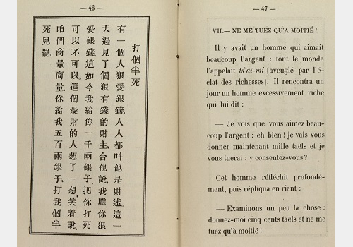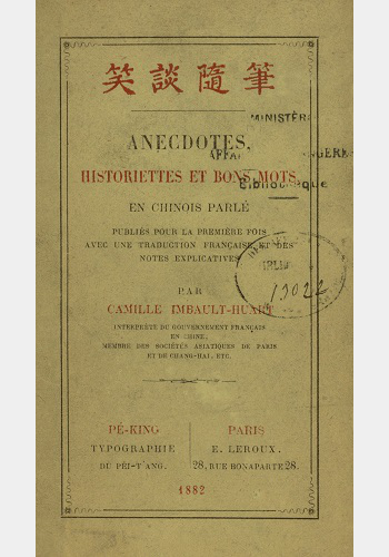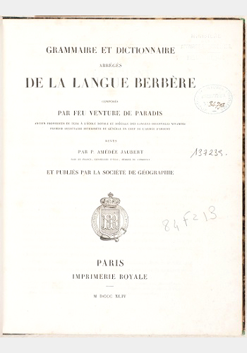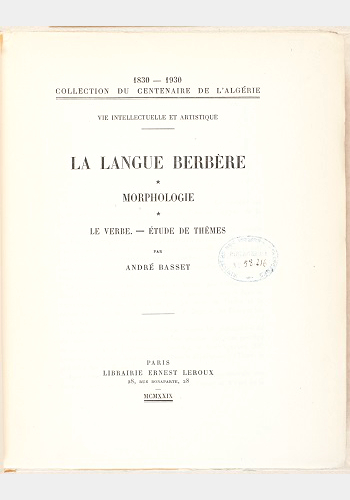 Au pays des langues étrangères La collecte de publications éditées à l’étranger (officielles ou non), d’ouvrages permettant l’apprentissage et la maîtrise des langues étrangères sont autant de préoccupations récurrentes à la bibliothèque pour l’information des bureaux et la formation des agents. Archives diplomatiques Publié le : 23 octobre 2025 Mis à jour le : 12 février 2026 Dans cette rubrique Archives & bibliothèque Venir aux Archives Confier ses archives ou travaux Consulter les archives Organiser un tournage aux Archives Organiser une visite des Archives Reproduire et réutiliser des archives Effectuer des recherches généalogiques ou familiales Accès des généalogistes professionnels Actes d’état civil et autres archives diplomatiques et consulaires L’état civil des Français à l’étranger Recherche de personnes disparues en Algérie pendant les derniers mois de la souveraineté française S’orienter dans les fonds et collections Ambassades, consulats, réseau culturel et de coopération (XVIe-XXe siècles) Colonies et territoires d’Outre-mer (1793-1960) Protectorats et mandat français (1881-1956) Récupération artistique Ressources pédagogiques Agenda et offre culturelle des Archives Concours des jeunes ambassadeurs et ambassadrices L’offre éducative du centre de La Courneuve L’offre éducative du centre de Nantes Sommaire En Serbe ! Une grammaire birmane qui fera date ! Un consul amateur de bons mots chinois Des langues orientales aux caractères bien européens Les pionniers de l’étude des langues berbères En Serbe ! Bibliothèque, 35 C 3 (7). Archives diplomatiques. Je suis de noble naissanceUne gracieuse tête et des jambes finesJe porte un véritable nom serbeEt quand l’amoureux m’apporte à son aiméeEn moi ils reconnaissent le cœur de Cupidon Qui suis-je ? Vous trouverez la réponse à la page 87 de ce recueil de 1857 publié à Zadar et qui recense 200 « Devinettes serbes morales et divertissantes », collectées par Vuk Vrcevic. Si vous êtes curieux de connaître la réponse sans attendre, il s’agit du … miroir de Vénus. Une grammaire birmane qui fera date ! La Birmanie : conférence faite à la Société académique indo-chinoise / Louis Vossion. Paris : Challamel, 1890. Bibliothèque, 31 A 8 (9). Archives diplomatiques. Pierre-Louis Vossion (1847-1906) est d’abord militaire avant de donner sa démission d’officier en 1874 pour accompagner en Birmanie son camarade de promotion à Saint-Cyr, Mong-Thon. Chargé de mission par Jules Ferry, il restera 5 ans en Birmanie avant de rentrer en France avec une collection d’objets (laques, tissus, armes, éventails et ombrelles, …) et de photographies. Il léguera ses objets à la Société de géographie qui les confiera à son tour à la Bibliothèque nationale de France. Quant à ses photographies, une partie est désormais conservée aux Archives diplomatiques. Il rejoint ensuite en 1880 le ministère des Affaires étrangères. Il sera vice-consul à Khartoum puis à Rangoon, avant d’être nommé consul à Philadelphie, à Honolulu jusqu’à l’annexion des îles Hawaï par les Etats-Unis en 1898, à Sydney et enfin à Bombay. C’est lors de son séjour en Birmanie qu’il rédige cette grammaire birmane publiée en 1890 et utilisée jusqu’en… 2001 par les étudiants de l’Ecole des langues orientales vivantes ! Grammaire birmane / Louis Vossion. Paris : s. n, 1890. Bibliothèque, 30 C 45. Archives diplomatiques. Cette grammaire est en fait la traduction de celle rédigée par Adoniram Judson (1788-1850), un missionnaire baptiste réformé américain qui vécut près de 40 ans en Birmanie. Si Louis Vossion a gardé le plan général de l’ouvrage de Judson, il le complète, le remanie, l’enrichit de nombreux exemples et, surtout, ajoute la prononciation en français de tous les mots birmans qui paraissent dans le texte. Louis Vossion est également l’auteur des Contes birmans publiés dans la collection Contes et légendes. Un consul amateur de bons mots chinois Anecdotes, historiettes et bons mots en chinois parlé / Camille Imbault Huart. Paris : Leroux, 1882. Bibliothèque, 32 F 28. Archives diplomatiques. Diplomate et sinologue Camille Imbault-Huart (1857-1897) est à trois reprises consul à Canton (1889-1892, 1893-1896, 1897). Sa connaissance approfondie de la Chine lui permet d’entretenir des relations apaisées avec le vice-roi Tchang Tchi-tong pourtant très hostile aux Français. Il organise la concession française, jusque-là en déshérence, en faisant nettoyer les terrains, en instituant une police, en faisant bâtir maisons, chapelles et bungalows. Ses démarches renouvelées lui permettent d’obtenir des fonds pour la construction d’un consulat. Les travaux commencent en janvier 1894. En 1896, il laisse la gérance du consulat à Léonce Flayelle (interprète) pour prendre un congé. Mais à son retour, en 1897, il tombe gravement malade et décède à l’hôpital de Hong-Kong. Sous la direction de Camille Imbault-Huart le consulat de Canton, outre son rôle de poste d’observation de la situation en Indochine, prend toute son importance en Chine. Camille Imbault-Huart est également l’auteur de plusieurs dizaines d’ouvrages et d’articles sur la Chine et sa civilisation : manuels de langue, traductions de poèmes, ouvrages historiques et géographiques, essais économiques et commerciaux. Anecdotes, historiettes et bons mots en chinois parlé / Camille Imbault Huart. Paris : Leroux, 1882. Bibliothèque, 32 F 28. Archives diplomatiques. Ces multiples travaux qui développeront les connaissances sur la Chine en France lui vaudront le titre d’officier d’Académie décerné par Goblet, ministre de l’Instruction publique, ainsi que le prix Edme-François Jomard décerné par la Société de géographie pour son étude sur Formose. L’Ile Formose, histoire et description / Camille Imbault-Huart ; [précédé d