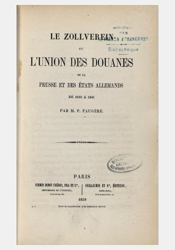 Dons d’hier et d’aujourd’hui Il faut rendre hommage à nos généreux donateurs. Particuliers et institutions, mais également services et agents du ministère des Affaires étrangères, participent considérablement à l’enrichissement des collections de la bibliothèque. La remise de livres à titre gracieux représente ainsi chaque année plus de la moitié des acquisitions. Archives diplomatiques Publié le : 23 octobre 2025 Mis à jour le : 12 février 2026 Dans cette rubrique Archives & bibliothèque Venir aux Archives Confier ses archives ou travaux Consulter les archives Organiser un tournage aux Archives Organiser une visite des Archives Reproduire et réutiliser des archives Effectuer des recherches généalogiques ou familiales Accès des généalogistes professionnels Actes d’état civil et autres archives diplomatiques et consulaires L’état civil des Français à l’étranger Recherche de personnes disparues en Algérie pendant les derniers mois de la souveraineté française S’orienter dans les fonds et collections Ambassades, consulats, réseau culturel et de coopération (XVIe-XXe siècles) Colonies et territoires d’Outre-mer (1793-1960) Protectorats et mandat français (1881-1956) Récupération artistique Ressources pédagogiques Agenda et offre culturelle des Archives Concours des jeunes ambassadeurs et ambassadrices L’offre éducative du centre de La Courneuve L’offre éducative du centre de Nantes Sommaire Adolphe Lévesque, baron d’Avril (1822-1904) Armand-Prosper Faugère (1810-1887) Adolphe Lévesque, baron d’Avril (1822-1904) [Album de caricatures dédié à Léon Noël] / Auguste Louvrier de Lajolais (dessins) ; Victor Perrin, duc de Bellune (quatrains). Paris : s.n., 1852-[1860]. Bibliothèque, Rés. C 6. Archives diplomatiques. Adolphe Lévesque, baron d’Avril, est diplomate et écrivain. Il entre au ministère des Affaires étrangères en 1847. Attaché à la mission française en Orient en 1854, rédacteur à la direction politique en 1856 puis consul général à Bucarest en 1866, il est nommé en 1868 délégué à la Commission européenne du Danube à Galatz. Il conserve cet emploi jusqu’à son affectation comme envoyé extraordinaire au Chili en 1876 où il reste jusqu’en 1882, date de son départ à la retraite. Il publie, parfois sous le pseudonyme de Cyrille, plusieurs ouvrages relatifs à l’Orient et donne une traduction nouvelle de la Chanson de Roland. Il collabore également à la Revue d’Orient, à la Revue des Deux Mondes,… Il épouse en 1857, à Paris, Marie Odobesco (née en Roumanie). Ils ont six enfants dont l’aîné, Louis, sera également diplomate. A une date indéterminée, il fait don au Département de sa bibliothèque, consacrée principalement à l’Europe orientale et au Moyen-Orient. Elle est formée de plus de 1 850 titres regroupant des ouvrages, des mélanges mais également un grand nombre de dossiers de presse reliés. Ces ouvrages sont inscrits à l’inventaire en juillet 1925 et mai 1938. Armand-Prosper Faugère (1810-1887) Prosper Faugère / Persus phot. (1870) Collection iconographique, série G. Archives diplomatiques. Le 15 février 1899, Marie-Héloïse Garnon décède. Elle est la veuve de Prosper Faugère (1810-1887). Par testament en date du 12 janvier 1895, elle lègue notamment au ministère des Affaires étrangères la majeure partie des volumes ayant composé la bibliothèque de son mari. 1548 titres viennent alors enrichir les collections imprimées. Ils forment un fonds particulier, identifié par la cote Fg.Certains livres intègrent également les séries de la bibliothèque comme l’atteste un ouvrage portant l’ex-legato Faugère coté 66 A 5 et inscrit au registre des entrées le 4 décembre 1908 (Le duc de Saint Simon, son Cabinet et l’historique de ses manuscrits… / A. Baschet. Paris : E. Plon, 1874). Ex-legato Faugère. Archives diplomatiques Mais, qui était donc Prosper Faugère ? Historien et homme de lettres, il entre au ministère des Affaires étrangères en 1840. Il est nommé directeur des Archives et des Chancelleries en 1866. Il le reste jusqu’à son départ en retraite en 1880. Son activité littéraire est essentiellement consacrée à l’étude de la vie et de l’œuvre de Blaise Pascal. En 1902, la bibliothèque Mazarine acceptera le legs par Mme Faugère de documents concernant Pascal et le jansénisme. Le seul incunable conservé à la bibliothèque provient du fonds Faugère. Il s’agit d’un volume des œuvres de Jean de Gerson, publié à Strasbourg en 1494. Prosper Faugère obtient à trois reprises le prix de l’éloquence proposé par l’Académie française. En 1838, il est récompensé pour son l’Éloge de Gerson. Le Zollverein ou l’union des douanes de la Prusse et des Etats allemands de 1819 à 1841 / Prosper Faugère. Paris : Firmin-Didot, 1859. Bibliothèque, Fg 1410. Archives diplomatiques. Au cours de la Seconde Guerre mondiale, le fonds Faugère a particulièrement pâti de spoliations commises par les troupes d’occupation et de destructions lorsqu’un incendie embrasa une partie des locaux du ministère des Affaires étrangères lors des combats pour la libération de Paris. Un récolement réalisé en juillet 2003 fait apparaître que sur les 1548 titres, seuls 786 figurent encore dans le fonds (parmi lesquels un ou plusieurs volumes font parfois défaut à 55 titres). En cliquant sur ce lien, vous découvrirez un manuscrit étonnant figurant dans le fonds Faugère.