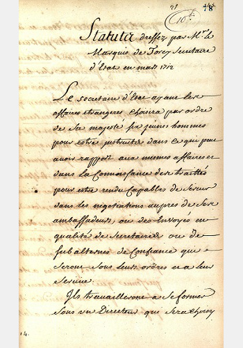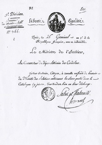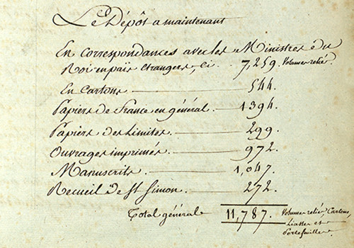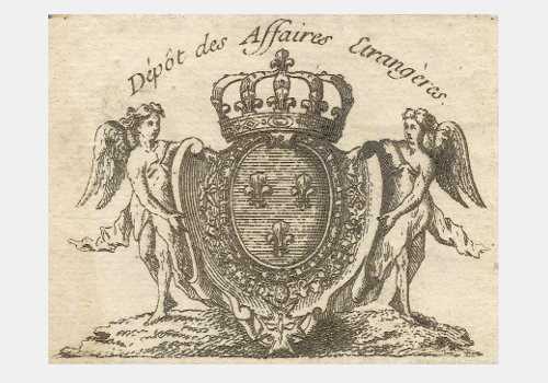 La bibliothèque et son histoire Conçue comme un outil de travail pour les agents du ministère des Affaires étrangères, la bibliothèque aura mis trois siècles pour réunir un corpus de 500 000 volumes à présent accessible à tous les publics. Arrêtons-nous ici sur le passé de la bibliothèque et les événements ayant jalonné son histoire. Évoquons ces femmes et ces hommes qui n’ont eu de cesse d’organiser la collecte et le signalement de ses collections. Il est intéressant et instructif de se pencher sur leurs pratiques professionnelles. Archives diplomatiques Publié le : 23 octobre 2025 Mis à jour le : 12 février 2026 Dans cette rubrique Archives & bibliothèque Venir aux Archives Confier ses archives ou travaux Consulter les archives Organiser un tournage aux Archives Organiser une visite des Archives Reproduire et réutiliser des archives Effectuer des recherches généalogiques ou familiales Accès des généalogistes professionnels Actes d’état civil et autres archives diplomatiques et consulaires L’état civil des Français à l’étranger Recherche de personnes disparues en Algérie pendant les derniers mois de la souveraineté française S’orienter dans les fonds et collections Ambassades, consulats, réseau culturel et de coopération (XVIe-XXe siècles) Colonies et territoires d’Outre-mer (1793-1960) Protectorats et mandat français (1881-1956) Récupération artistique Ressources pédagogiques Agenda et offre culturelle des Archives Concours des jeunes ambassadeurs et ambassadrices L’offre éducative du centre de La Courneuve L’offre éducative du centre de Nantes Sommaire Des livres pour les bureaux des Affaires étrangères Quelques pièces au Louvre pour établissement L’Académie politique : une école pour les négociateurs Une salle pour les livres dans l’hôtel des Affaires étrangères à Versailles Une marque pour seule trace Chrétien-Frédéric Pfeffel (1726-1807) Les premières reliures aux Archives diplomatiques Une Révolution pour la bibliothèque du ministère des Relations extérieures Quand la commission des Archives diplomatiques réforme la bibliothèque Restitutions : « dernières minutes » L’histoire de la bibliothèque en quelques dates 1680 Premiers achats identifiés d’ouvrages imprimés, destinés aux bureaux de Colbert de Croissy. La note s’élève à 1 484 livres ! 1710-1722 Colbert de Torcy installe en 1710 le dépôt des Archives au Vieux-Louvre. Il lui associe en 1712 une école diplomatique, l’Académie politique, chargée de former de jeunes diplomates "à l’étude des négociations étrangères et du droit des gens". Un choix de livres est rassemblé pour leur instruction. Grotius, Puffendorf, de Wicquefort, Machiavel, Lipse sont au programme. On enseigne le droit public, l’histoire des traités, le cérémonial et les langues étrangères. Cette première école d’administration cesse de fonctionner en 1722. 1723 Pendant les ministères du comte de Morville et de Chauvelin, on confie à Jean-Conrad Pfeffel, jurisconsulte du Roi, l’achat en Allemagne d’ouvrages sur le droit public. 1763 Le dépôt des Affaires étrangères rejoint Versailles et s’installe au 1er étage de l’hôtel des Affaires étrangères, récemment construit par Jean-Baptiste Berthier. 1768 Choiseul-Stainville achète la bibliothèque de Chrétien-Frédéric Pfeffel, fils de Jean-Conrad et jurisconsulte du Ministère. Concernant principalement le droit et l’histoire de l’Allemagne et de l’Alsace, Pfeffel en garde la jouissance jusqu’à ce qu’il soit démissionné en 1792. 1792 972 volumes imprimés sont identifiés au 1er février 1792 (rapport de Sémonin, garde du Dépôt, à Valdec de Lessart, secrétaire d’Etat aux Affaires étrangères). 1796-1798 Les collections de la bibliothèque du ministère des Affaires étrangères s’accroissent de manière considérable pendant la période révolutionnaire. Entre 1796 et 1798, le ministre de l’Intérieur autorise les conservateurs des dépôts littéraires à faire remettre au ministre des Relations extérieures « tous les ouvrages qui pouvaient lui convenir ». 3 449 nouveaux titres entrent ainsi au Ministère. C’est à cette époque que des ouvrages provenant de bibliothèques nobiliaires ou conventuelles prestigieuses rentrent dans les collections du Ministère : Montmorency, Condé, Vergennes, Pignatelli d’Egmont, le cardinal d’Alsace, le prieuré Saint-Martin-des-Champs ou l’abbaye Saint-Victor. Il n’existe pour cette première période de l’existence de la collection imprimée ni inventaire ni catalogue. Seule l’étude des marques et des archives permet de connaître sa composition. 1822 La bibliothèque compte 14 000 livres. 1824 On fait établir un catalogue méthodique, le premier (à notre connaissance) aux Affaires étrangères. Par une note sur sa page de titre, on apprend également qu’on alimente parallèlement un second catalogue composé de « cartes mobiles rangées dans une boîte de manière à former toujours avec exactitude une table alphabétique des auteurs et matières ». 1865 La bibliothèque conserve 27 000 livres. 1890 Une commission de réorganisation de la bibliothèque, mise en place en 1890, redéfinit les missions de la bibliothèque. Il faut développer pour les agents une bibliothèque diplomatique, spécialisée dans des domaines plus limités (législation, géographie et voyages, histoire, documents officiels étrangers). 1905 La bibliothèque détient 80 000 volumes. 1923 Georges Girard est nommé bibliothécaire. A cours de la décennie qui suit, le classement matériel et le traitement intellectuel des collections s’améliorent considérablement. 2011 L’Assemblée nationale cède à la bibliothèque 90 000 volumes de publications administratives étrangères. 2014 Les collections atteignent environ 500 000 volumes. Des livres pour les bureaux des Affaires étrangères Charles Colbert (1629
