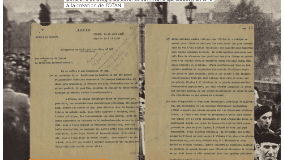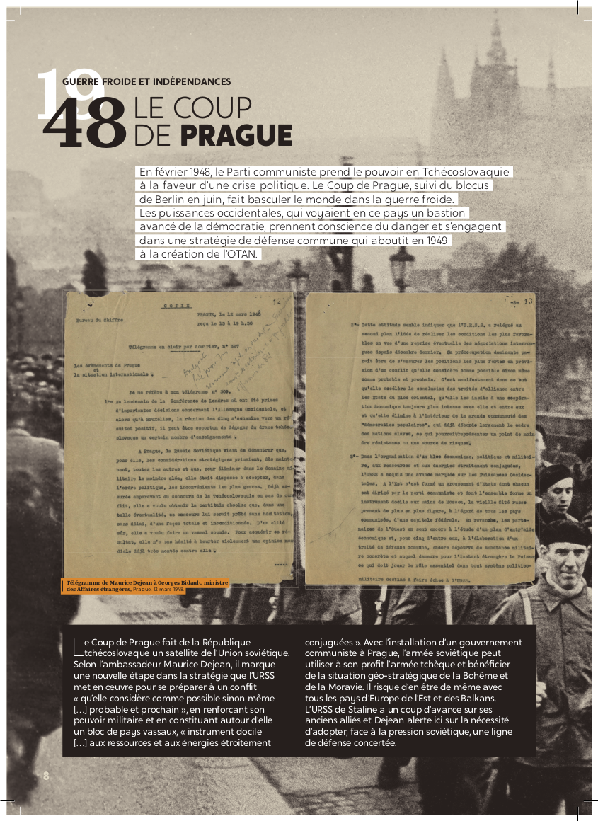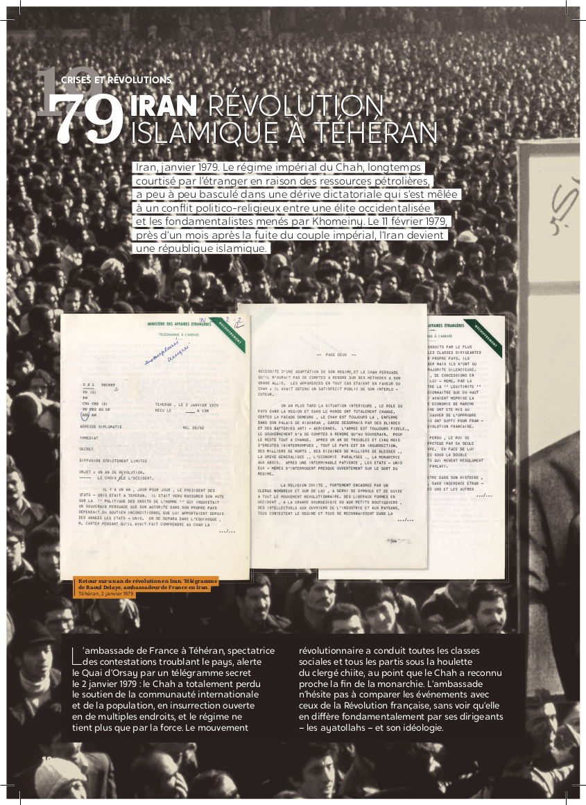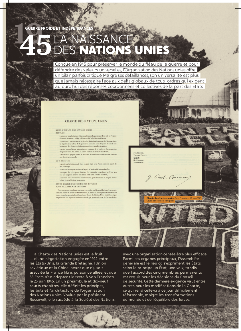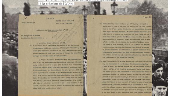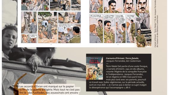 Exposition "Diplomatie & BD" Dans le cadre de la semaine "Nantes diplomatique !", découvrez les regards croisés des diplomates témoins de l’époque et d’auteurs de BD sur les grands événements de l’histoire contemporaine. Archives diplomatiques Publié le : 03 novembre 2025 Mis à jour le : 23 février 2026 Dans cette rubrique Archives & bibliothèque Venir aux Archives Confier ses archives ou travaux Consulter les archives Organiser un tournage aux Archives Organiser une visite des Archives Reproduire et réutiliser des archives Effectuer des recherches généalogiques ou familiales Accès des généalogistes professionnels Actes d’état civil et autres archives diplomatiques et consulaires L’état civil des Français à l’étranger Recherche de personnes disparues en Algérie pendant les derniers mois de la souveraineté française S’orienter dans les fonds et collections Ambassades, consulats, réseau culturel et de coopération (XVIe-XXe siècles) Colonies et territoires d’Outre-mer (1793-1960) Protectorats et mandat français (1881-1956) Récupération artistique Ressources pédagogiques Agenda et offre culturelle des Archives Concours des jeunes ambassadeurs et ambassadrices L’offre éducative du centre de La Courneuve L’offre éducative du centre de Nantes Présenter la diplomatie en action dans l’histoire internationale depuis 1945, tel est le propos central de l’exposition. Elle concentre 80 ans d’histoire en un choix limité d’événements « faisant date », depuis la naissance de l’ONU jusqu’à la conférence de Paris sur le climat (2015), emblématiques et riches d’enseignements pour notre temps. En associant archives et planches dessinées, l’exposition propose de saisir l’événement à travers sa perception immédiate par le diplomate, dans les rapports qu’il destine à sa seule administration, en contrepoint des planches dessinées, œuvres éminemment subjectives d’auteurs qui se sont inspirés, dans leurs récits en images, de ces mêmes événements ou contextes. Des photographies, saisies sur le vif, parfois iconiques, complètent le tableau, pour une vision voulue proche de la réalité, celle du reporter photographe. Réalisation : ©Archives diplomatiques et ©Société AD2 Productions Exposition itinérante en 22 panneaux mobiles. Dimensions : 215x100 cm,Autre format disponible : 200x100 cm (numérique, à imprimer) Prêt des 22 panneaux mobiles sur demande ou transmission des fichiers à imprimer sur place. Renseignements, conditions d’utilisation et demandes de prêt : à La Courneuve : lecture.archives@diplomatie.gouv.fr à Nantes : educatif.cadn@diplomatie.gouv.fr Diplomatie et BD Fermer Diplomatie et BD Télécharger le catalogue Diplomatie et BD PDF - 13 238.5 KB Liste des panneaux : 1945 : La naissance des Nations Unies 1948 : Le coup de Prague 1951 : Les prémices du projet d’union européenne 1954 : La paix en Indochine 1962 : Algérie la fin d’une guerre sans nom 1966 : Les indépendances africaines 1979 : Iran révolution islamique à Téhéran 1990 : Nouvelle Allemagne, nouvelle Europe ? 2003 : Seconde guerre d’Irak - Le refus de la France 2015 : Paris un accord universel sur le climat L’exposition a déjà été présentée au Centre des Archives diplomatiques de la Courneuve du 15 mars au 8 juillet 2022. Au Centre des Archives diplomatiques de Nantes, elle est ouverte aux visites scolaires, sur réservation, de novembre 2025 à juin 2026. A l’étranger : Institut français, Istanbul, Izmir, Ankara (2022)