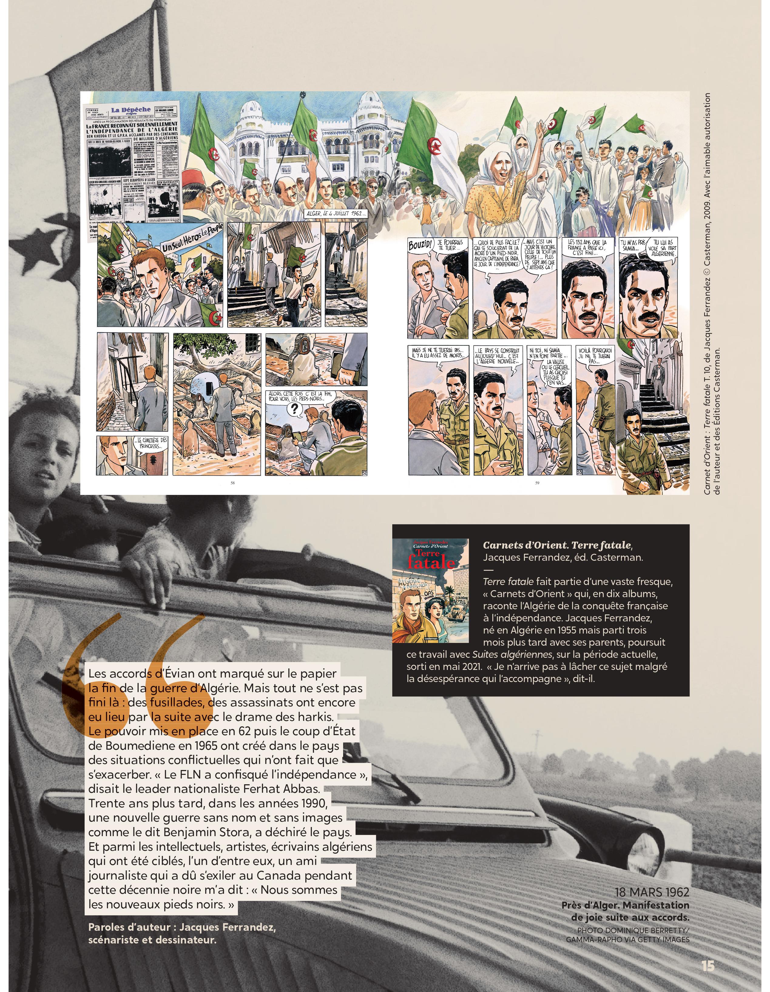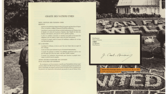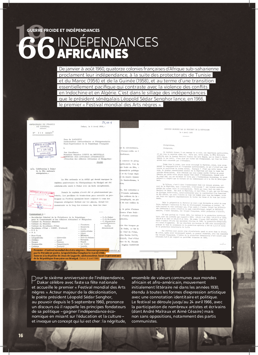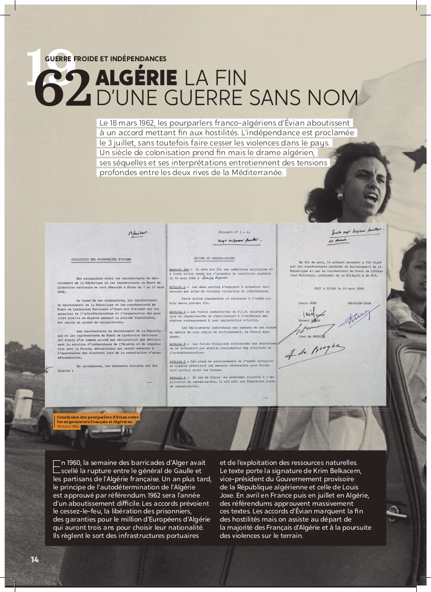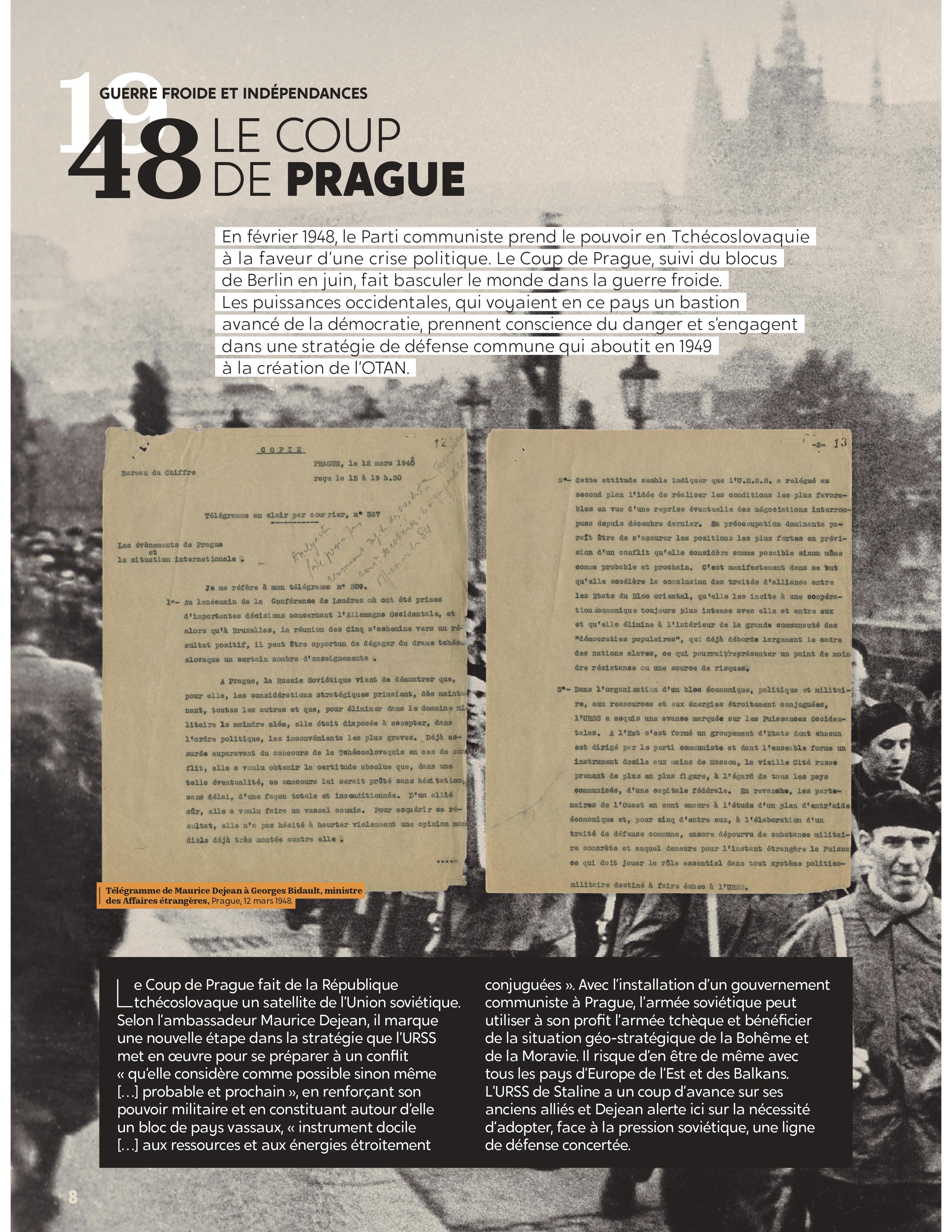 Exposition "Diplomatie & BD" Dans le cadre de la semaine "Nantes diplomatique !", découvrez les regards croisés des diplomates témoins de l’époque et d’auteurs de BD sur les grands événements de l’histoire contemporaine. Archives diplomatiques Publié le : 03 novembre 2025 Mis à jour le : 23 février 2026 Dans cette rubrique Archives & bibliothèque Venir aux Archives Confier ses archives ou travaux Consulter les archives Organiser un tournage aux Archives Organiser une visite des Archives Reproduire et réutiliser des archives Effectuer des recherches généalogiques ou familiales Accès des généalogistes professionnels Actes d’état civil et autres archives diplomatiques et consulaires L’état civil des Français à l’étranger Recherche de personnes disparues en Algérie pendant les derniers mois de la souveraineté française S’orienter dans les fonds et collections Ambassades, consulats, réseau culturel et de coopération (XVIe-XXe siècles) Colonies et territoires d’Outre-mer (1793-1960) Protectorats et mandat français (1881-1956) Récupération artistique Ressources pédagogiques Agenda et offre culturelle des Archives Concours des jeunes ambassadeurs et ambassadrices L’offre éducative du centre de La Courneuve L’offre éducative du centre de Nantes Présenter la diplomatie en action dans l’histoire internationale depuis 1945, tel est le propos central de l’exposition. Elle concentre 80 ans d’histoire en un choix limité d’événements « faisant date », depuis la naissance de l’ONU jusqu’à la conférence de Paris sur le climat (2015), emblématiques et riches d’enseignements pour notre temps. En associant archives et planches dessinées, l’exposition propose de saisir l’événement à travers sa perception immédiate par le diplomate, dans les rapports qu’il destine à sa seule administration, en contrepoint des planches dessinées, œuvres éminemment subjectives d’auteurs qui se sont inspirés, dans leurs récits en images, de ces mêmes événements ou contextes. Des photographies, saisies sur le vif, parfois iconiques, complètent le tableau, pour une vision voulue proche de la réalité, celle du reporter photographe. Réalisation : ©Archives diplomatiques et ©Société AD2 Productions Exposition itinérante en 22 panneaux mobiles. Dimensions : 215x100 cm,Autre format disponible : 200x100 cm (numérique, à imprimer) Prêt des 22 panneaux mobiles sur demande ou transmission des fichiers à imprimer sur place. Renseignements, conditions d’utilisation et demandes de prêt : à La Courneuve : lecture.archives@diplomatie.gouv.fr à Nantes : educatif.cadn@diplomatie.gouv.fr Diplomatie et BD Fermer Diplomatie et BD Télécharger le catalogue Diplomatie et BD PDF - 13 238.5 KB Liste des panneaux : 1945 : La naissance des Nations Unies 1948 : Le coup de Prague 1951 : Les prémices du projet d’union européenne 1954 : La paix en Indochine 1962 : Algérie la fin d’une guerre sans nom 1966 : Les indépendances africaines 1979 : Iran révolution islamique à Téhéran 1990 : Nouvelle Allemagne, nouvelle Europe ? 2003 : Seconde guerre d’Irak - Le refus de la France 2015 : Paris un accord universel sur le climat L’exposition a déjà été présentée au Centre des Archives diplomatiques de la Courneuve du 15 mars au 8 juillet 2022. Au Centre des Archives diplomatiques de Nantes, elle est ouverte aux visites scolaires, sur réservation, de novembre 2025 à juin 2026. A l’étranger : Institut français, Istanbul, Izmir, Ankara (2022)