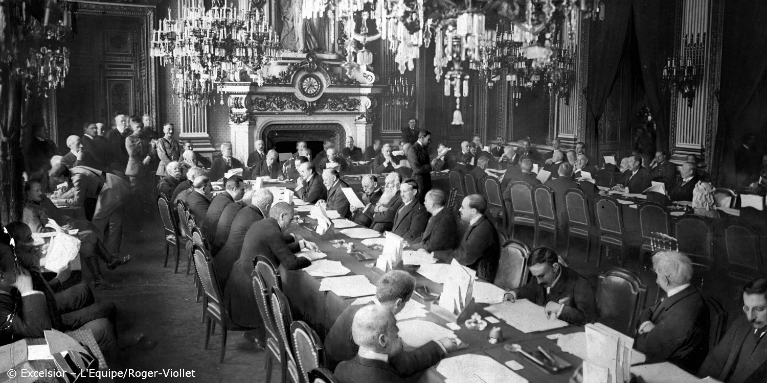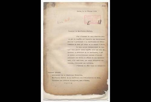 L’inauguration de la Conférence de la paix Le 18 janvier 1919 s’ouvrait à Paris la Conférence de la paix qui rassemblait les pays vainqueurs de la Première guerre mondiale pour préparer les traités de paix. Dès l’ouverture, les nouvelles nations expriment leurs aspirations à l’autonomie et à l’indépendance. Retour sur les premiers temps de la Conférence à travers les documents exclusifs tirés de nos archives diplomatiques. Archives diplomatiques Publié le : 21 octobre 2025 Mis à jour le : 24 février 2026 © Excelsior – L’Equipe/Roger-Viollet Dans cette rubrique Archives & bibliothèque Venir aux Archives Confier ses archives ou travaux Consulter les archives Organiser un tournage aux Archives Organiser une visite des Archives Reproduire et réutiliser des archives Effectuer des recherches généalogiques ou familiales Accès des généalogistes professionnels Actes d’état civil et autres archives diplomatiques et consulaires L’état civil des Français à l’étranger Recherche de personnes disparues en Algérie pendant les derniers mois de la souveraineté française S’orienter dans les fonds et collections Ambassades, consulats, réseau culturel et de coopération (XVIe-XXe siècles) Colonies et territoires d’Outre-mer (1793-1960) Protectorats et mandat français (1881-1956) Récupération artistique Ressources pédagogiques Agenda et offre culturelle des Archives Concours des jeunes ambassadeurs et ambassadrices L’offre éducative du centre de La Courneuve L’offre éducative du centre de Nantes Sommaire Les objectifs de la Conférence Les aspirations à l’indépendance des nouvelles nations : les documents des archives diplomatiques Qui siège à la Conférence de la Paix ? Préliminaires de la Paix à Paris, début 1919 : conférence dans le salon de l’Horloge au ministère des Affaires étrangères (quai d’Orsay). Paris (VIIème arr.) © Excelsior – L’Equipe/Roger-Viollet Fruit d’actives négociations entre les Français, conduits par Georges Clemenceau et soutenus par leurs alliés britannique et italien d’un côté, et le président américain Wilson de l’autre, le « congrès de la Paix » entend s’inspirer des grands congrès qui jalonnèrent l’histoire des relations internationales au XIXe siècle en imposant peu à peu la diplomatie multilatérale : Vienne en 1815, Paris en 1856 ou encore Berlin en 1878. Télécharger les documents d’archive de l’article PDF - 22 994.2 KB Les objectifs de la Conférence Les objectifs de la conférence sont de déterminer les nouvelles frontières des États, fixer de grands principes en matière de relations internationales qui puissent assurer une paix durable et créer les bases d’une diplomatie multilatérale en définissant les contours de la nouvelle Société des Nations. Woodrow Wilson plaide la conciliation envers les vaincus et espère que ses quatorze points, formulés le 8 janvier 1918, serviront de ligne directrice aux délégations. Dans son discours d’inauguration, le président de la République française, Raymond Poincaré, insiste sur la nécessité d’établir « une paix de justice » et invite les diplomates réunis à bannir les rêves de conquête et d’impérialisme : « Le temps n’est plus où les diplomates pouvaient se réunir pour refaire d’autorité, sur un coin de table, la carte des empires. Si vous avez à remanier la carte du monde, c’est au nom des peuples et à la condition de traduire fidèlement leurs pensées ; de respecter le droit des nations, petites et grandes, à disposer d’elles-mêmes et de le concilier avec le droit, également sacré, des minorités ethniques et religieuses. » Raymond Poincaré Les aspirations à l’indépendance des nouvelles nations : les documents des archives diplomatiques La proclamation du principe des nationalités allait favoriser les aspirations à l’autonomie et à l’indépendance de nouvelles nations, telles que l’Arménie, la Perse ou l’Égypte qui demandent à la Conférence de reconnaître leur existence ou l’autorisation de constituer des délégations pour faire entendre leurs revendications. Arménie : lettre de Paul Pierre XIII Terzian, patriarche des Arméniens catholiques de Cilicie à Georges Clemenceau (14 janvier 1919) Dans ce courrier, le patriarche demande que la conférence « daigne s’intéresser dans la mesure la plus juste au sort de la nation arménienne et à en obtenir la complète libération en assurant son indépendance ». Égypte : Lettre de Saad Zaghloul, Président de la délégation égyptienne, à Georges Clémenceau, et mémoire des revendications (29 janvier 1919) Dans cette lettre, le président de la délégation proteste contre l’impossibilité de présenter son mémoire de revendications en séance et demande à Clemenceau de « saisir officiellement de [leur] cas la Conférence de la paix ». Le mémoire a pour but d’exposer les raisons pour lesquelles « l’Égypte peut revendiquer la plénitude de ses droits à une existence libre, à une indépendance totale ». Perse : Lettre de Mochaver-ol-Memalek, ministre des affaires étrangères de Perse à Paul Dutasta, secrétaire général de la Conférence (14 février 1919) Il demande officiellement à ce que son gouvernement participe à la Conférence et de « bien vouloir placer cette requête sous les yeux de Monsieur le Président de la Conférence ». Qui siège à la Conférence de la Paix ? Dès le mois de novembre 1918, le ministère des Affaires étrangères français s’est mobilisé pour réfléchir à son déroulement. La liste des participants est établie : comme en 1815, des délégations représentent les États qui doivent prendre part aux négociations. Vingt-sept États sont représentés dont la France qui doit avoir cinq représentants comme les États-Unis, l’Empire britannique, le Japon et l’Italie, trois pour la Belgique, le Brésil et la Serbie, deux pour l