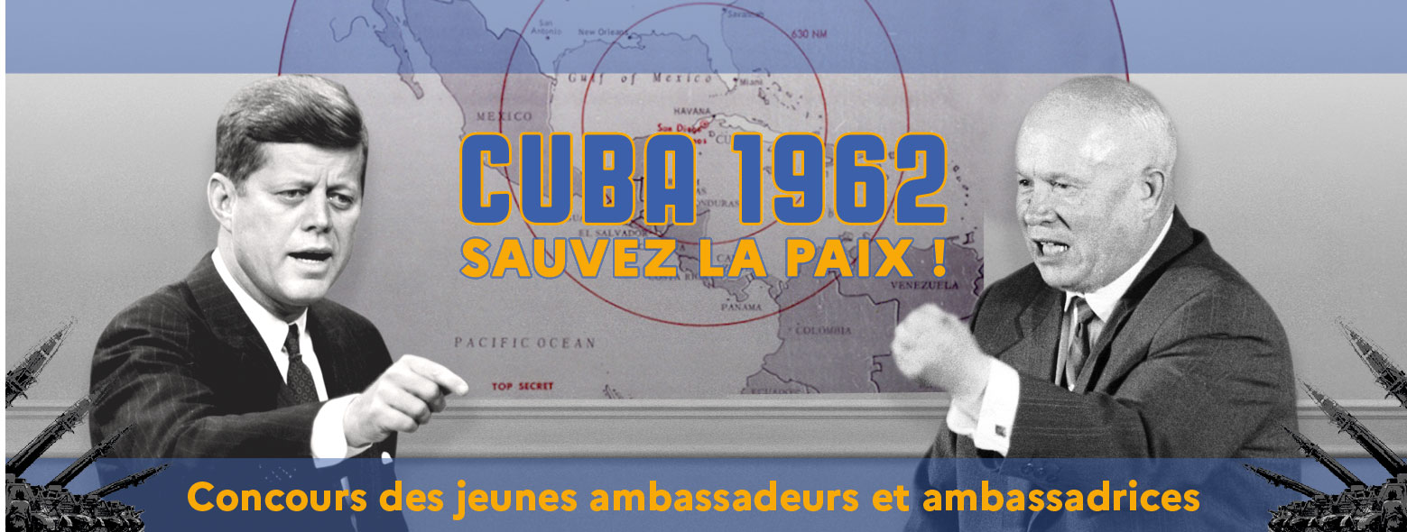 5e édition du concours des jeunes ambassadeurs et ambassadrices (2021-2022) : Cuba 1962, sauvez la paix ! La cinquième édition du concours propose aux classes des collèges, lycées et lycées professionnels de se mettre dans la peau d’un diplomate siégeant au conseil de sécurité de l’ONU lors de la crise des missiles de Cuba, en 1962. Découvrez dès aujourd’hui le dossier documentaire et les modalités du concours. Inscriptions à partir de septembre 2021. Publié le : 01 décembre 2025 Mis à jour le : 03 mars 2026 Dans cette rubrique Archives & bibliothèque Venir aux Archives Confier ses archives ou travaux Consulter les archives Organiser un tournage aux Archives Organiser une visite des Archives Reproduire et réutiliser des archives Effectuer des recherches généalogiques ou familiales Accès des généalogistes professionnels Actes d’état civil et autres archives diplomatiques et consulaires L’état civil des Français à l’étranger Recherche de personnes disparues en Algérie pendant les derniers mois de la souveraineté française S’orienter dans les fonds et collections Ambassades, consulats, réseau culturel et de coopération (XVIe-XXe siècles) Colonies et territoires d’Outre-mer (1793-1960) Protectorats et mandat français (1881-1956) Récupération artistique Ressources pédagogiques Agenda et offre culturelle des Archives Concours des jeunes ambassadeurs et ambassadrices L’offre éducative du centre de La Courneuve L’offre éducative du centre de Nantes Sommaire Le concours Points de programmes concernés Documents pédagogiques Boîte à outils et vidéos « Vous êtes le représentant à l’ONU d’un des pays participant au Conseil de sécurité du 24 au 26 octobre 1962. A l’issue de la dernière séance du 26 octobre, vous présentez à la presse la position de votre pays et ses initiatives pour résoudre la crise des missiles de Cuba. » Le concours Organisé par les Archives diplomatiques, avec le soutien des rectorats de Créteil et Nantes, le concours est ouvert aux classes des collèges, lycées et lycées professionnels d’Île-de-France et des Pays-de-la-Loire. Des prix seront attribués dans chaque région aux lauréats des trois catégories. Pour imaginer ce discours, les élèves travailleront à partir des documents conservés aux Archives diplomatiques. Recherche, qualité de l’argumentation et force de conviction seront valorisés par le jury du concours, composé de diplomates, d’historiens et d’enseignants. Les ressources ci-dessous sont à disposition des enseignants et des élèves pour la préparation de leur discours. Calendrier Ouverture des inscriptions : 1er septembre 2021 Clôture des inscriptions : 8 novembre 2021 Pays-de-la-Loire : archives.cadn@diplomatie.gouv.frÎle-de-France : lecture.archives@diplomatie.gouv.fr Date limite de remise des productions : 25 février 2022 (Nantes), 4 avril 2022 (La Courneuve) Annonce des groupes pré-sélectionnés : mars 2022 (Nantes), 12 avril 2022 (La Courneuve) Finales à La Courneuve et Nantes, devant le jury du concours : avril-mai 2022 Remise des prix : fin mai-début juin 2022 Les établissements hors Pays-de-la-Loire et Île-de-France peuvent travailler sur le dossier du concours et s’inscrire par courriel auprès du centre des Archives diplomatiques de Nantes et lui adresser les discours de leurs élèves avant la date limite de réception. Ils seront examinés et notés par le jury mais n’entreront pas dans la compétition. Points de programmes concernés Collège, 3e : la Guerre froide.Lycée, Terminale : une nouvelle donne géopolitique : bipolarisation et émergence du tiers-monde.Lycée professionnel, Terminale : le jeu des puissances dans les relations internationales depuis 1945. Documents pédagogiques Télécharger les modalités pratiques - Ile-de-France - tous établissements ZIP - 1 037.8 KB Collèges Télécharger les modalités pratiques collèges - Pays-de-la-Loire PDF - 971.2 KB Télécharger le dossier documentaire - collèges PDF - 3 311.5 KB Télécharger les documents d’archives - collèges ZIP - 5 268.9 KB Télécharger les documents d’archives complémentaires - tous niveaux ZIP - 9 442.5 KB Lycées Télécharger les modalités pratiques lycées - Pays-de-la-Loire PDF - 1 003.6 KB Télécharger le dossier documentaire - lycées PDF - 3 455.5 KB Télécharger les documents d’archives - lycées ZIP - 10 432.9 KB Télécharger les documents d’archives complémentaires - tous niveaux ZIP - 9 442.5 KB Lycées professionnels Télécharger les modalités pratiques lycées professionnels - Pays-de-la-Loire PDF - 1 019.7 KB Télécharger le dossier documentaire - lycées professionnels PDF - 3 279.8 KB Télécharger les documents d’archives - lycées professionnels ZIP - 5 268.9 KB Télécharger les documents d’archives complémentaires - tous niveaux ZIP - 9 442.5 KB Boîte à outils et vidéos Retrouvez les temps forts des précédentes éditions sur le site de l’académie de Nantes. Retour en vidéo sur l’édition Ile-de-France 2020-2021 Exemples de discours Télécharger les discours des lauréates 2018-2019 (lycées) PDF - 83.6 KB Télécharger les discours des lauréates 2018-2019 (lycées professionnels) PDF - 87.5 KB Visite du Centre des Archives diplomatiques de Nantes Télécharger le flyer de présentation du concours PDF - 1 950.6 KB