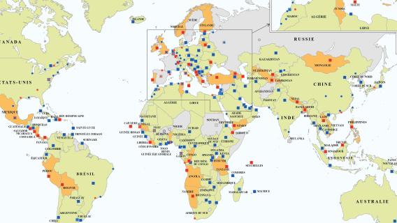 Cartes La réalisation de cartes géographiques au format A4 (dites "format dossier") par le pôle géographique de la direction des Archives remonte à une quarantaine d’années. A l’époque, il n’existait pas dans l’édition ce genre de document aux dimensions pratiques. Le but était de pouvoir insérer, dans des dossiers diplomatiques divers, une ou plusieurs cartes représentant de façon claire un continent, une région, un pays ou une entité non-étatique. Archives diplomatiques Publié le : 20 avril 2026 Mis à jour le : 23 avril 2026 Dans cette rubrique Archives & bibliothèque Venir aux Archives Confier ses archives ou travaux Consulter les archives Organiser un tournage aux Archives Organiser une visite des Archives Reproduire et réutiliser des archives Effectuer des recherches généalogiques ou familiales Accès des généalogistes professionnels Actes d’état civil et autres archives diplomatiques et consulaires L’état civil des Français à l’étranger Recherche de personnes disparues en Algérie pendant les derniers mois de la souveraineté française S’orienter dans les fonds et collections Ambassades, consulats, réseau culturel et de coopération (XVIe-XXe siècles) Cartes Colonies et territoires d’Outre-mer (1793-1960) Etat général des fonds - Inventaires en ligne Images Livres et revues Protectorats et mandat français (1881-1956) Récupération artistique Traités et accords Ressources pédagogiques Agenda et offre culturelle des Archives Concours des jeunes ambassadeurs et ambassadrices L’offre éducative du centre de La Courneuve L’offre éducative du centre de Nantes Présentation générale Cette cartographie a débuté de façon traditionnelle, puis – à partir du début des années 90 – à l’aide d’outils informatiques (logiciels de dessin vectoriel). La mise à jour de ces cartes se fait plus ou moins régulièrement, selon les changements qui peuvent intervenir et les informations qui parviennent au pôle géographique (découpage administratif, voies de communication, etc.). Le principal défaut de cette série est la variation d’échelle d’une carte à l’autre. Les pays vastes sont représentés de façon moins détaillée que les petits. Il a fallu supprimer des villes de 200 000 habitants sur la carte du Japon, alors qu’on voit les bassins des jardins du Vatican ! On peut trouver en ligne, sous cette rubrique, un ensemble de cartes qui est progressivement complété. Elle sont fournies en format PDF bridé ou JPG et peuvent être librement imprimées. D’autres cartes sont accessibles sur place dans nos centres de La Courneuve et de Nantes, auprès des équipes pédagogiques des Archives diplomatiques : Les abolitions de l’esclavage au 19e siècle Guerre et paix en Indochine, 1945-1954 Berlin, lieu et symbole de la guerre froide La construction européenne Les guerres de Yougoslavie Les cartes dont les fichiers pdf et jpg sont disponibles en ligne sur le site sont librement utilisables dans le cadre privé ou par les professeurs pour leur enseignement en classe sous réserve de l’indication claire et systématique de la source sous la forme suivante : © Archives du Ministère de l’Europe et des Affaires étrangères - La Courneuve. Pour une autre utilisation écrire à : lecture.archives@diplomatie.gouv.fr Europe et Asie continentale Europe et Asie continentale Afrique subsaharienne Afrique subsaharienne Afrique du Nord et Moyen-Orient Afrique du Nord et Moyen-Orient Amérique Amérique Asie orientale et méridionale, Océanie Asie orientale et méridionale, Océanie Monde et autres régions Monde et autres régions Cartes thématiques Cartes thématiques