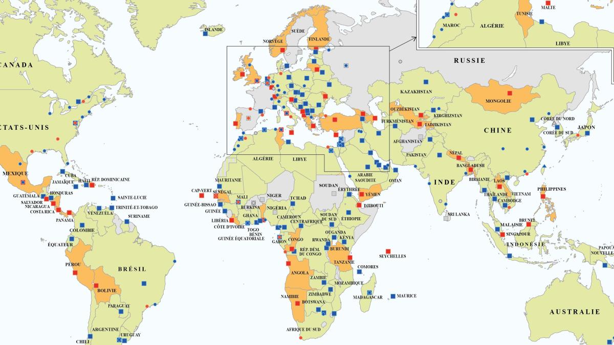 Cartes thématiques Cartes thématiques Archives diplomatiques Publié le : 21 avril 2026 © Archives du Ministère de l’Europe et des Affaires étrangères - La Courneuve Dans cette rubrique Archives & bibliothèque Venir aux Archives Confier ses archives ou travaux Consulter les archives Organiser un tournage aux Archives Organiser une visite des Archives Reproduire et réutiliser des archives Effectuer des recherches généalogiques ou familiales Accès des généalogistes professionnels Actes d’état civil et autres archives diplomatiques et consulaires L’état civil des Français à l’étranger Recherche de personnes disparues en Algérie pendant les derniers mois de la souveraineté française S’orienter dans les fonds et collections Ambassades, consulats, réseau culturel et de coopération (XVIe-XXe siècles) Cartes Colonies et territoires d’Outre-mer (1793-1960) Etat général des fonds - Inventaires en ligne Images Livres et revues Protectorats et mandat français (1881-1956) Récupération artistique Traités et accords Ressources pédagogiques Agenda et offre culturelle des Archives Concours des jeunes ambassadeurs et ambassadrices L’offre éducative du centre de La Courneuve L’offre éducative du centre de Nantes Ambassades, représentations permanentes, consulats et bureaux de la France dans le monde Postes diplomatiques français dans le monde au 1er janvier 2026 JPG - 1 415.4 KB Postes diplomatiques français dans le monde au 1er janvier 2026 PDF - 1 458.2 KB Construction européenne CECA en 1951 puis CEE en 1957 JPG - 3 264.8 KB CEE en 1973 JPG - 2 879.7 KB CEE en 1981 JPG - 2 867.3 KB CEE en 1986 JPG - 2 925.5 KB CEE en 1990 JPG - 2 915.7 KB Union européenne en 1993 JPG - 718.8 KB Union européenne en 1995 JPG - 729.8 KB Union européenne en 2004 JPG - 779.6 KB Union européenne en 2007 JPG - 745.2 KB Union européenne en 2013 JPG - 741.2 KB Union européenne en 2021 JPG - 743.3 KB AELE en 2021 JPG - 3 180.1 KB EEE en 2021 JPG - 3 663.1 KB Espace Schengen en 2021 JPG - 3 690.5 KB Zone Euro en 2021 JPG - 3 445.3 KB Conseil de l’Europe en 2021 JPG - 4 007.8 KB OSCE en 2021 JPG - 4 464.0 KB La répartition hommes-femmes parmi les chefs de postes diplomatiques et consulaires Chefs de postes diplomatiques et consulaires en 2024 : Répartition hommes-femmes JPG - 1 119.9 KB Chefs de postes diplomatiques et consulaires en 2024 : Répartition hommes-femmes PDF - 1 358.3 KB