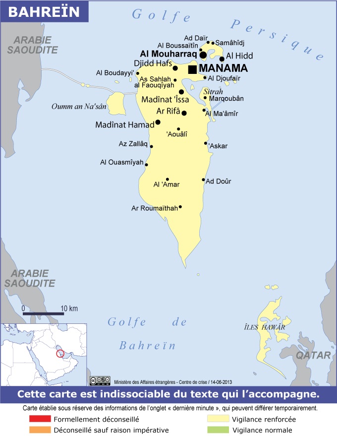 La menace terroriste à Bahreïn est relativement peu élevée mais le contexte régional doit inciter à se tenir informé, et à adopter un comportement prudent et vigilant.