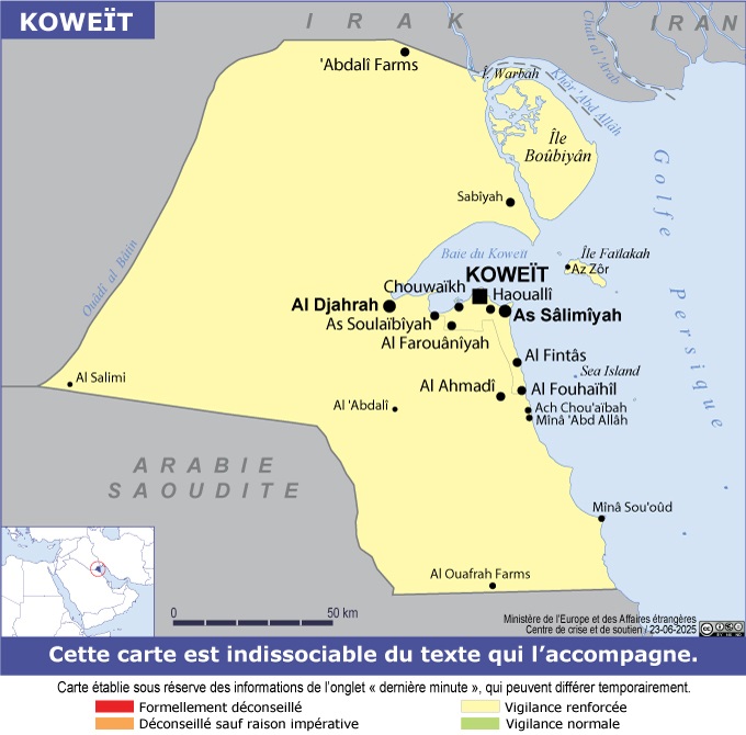 Les tensions régionales peuvent avoir des répercussions sur la situation au Koweït. L’évolution de la situation dans la région doit faire l’objet d’une attention constante et soutenue en cas de voyage au Koweït.