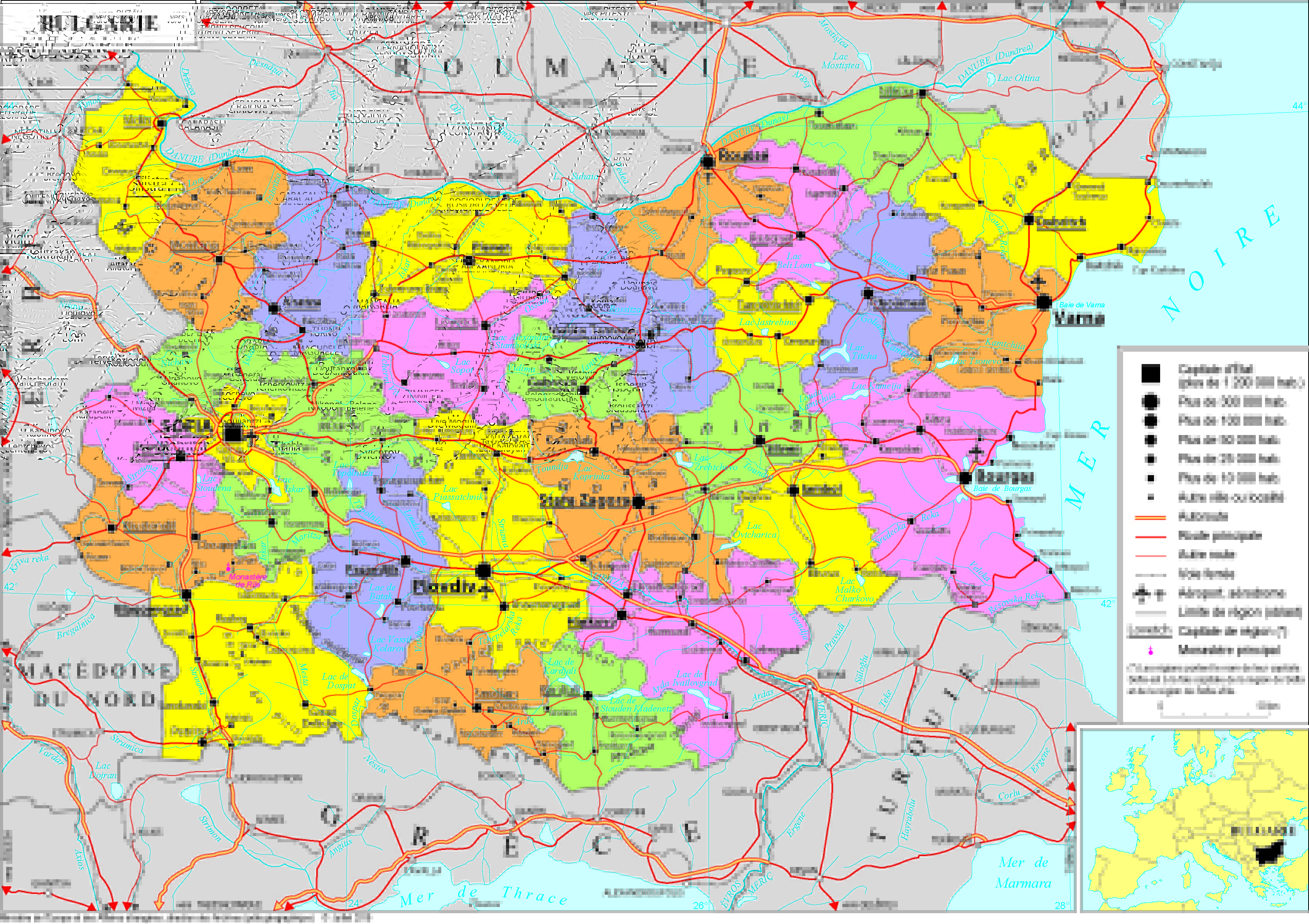 Bulgarie Navigation latérale fiche pays Dans cette rubrique Bulgarie Présentation de la Bulgarie Conseils aux voyageurs Dernières minutes et alertes Sécurité Entrée / séjour Santé Informations utiles Voyages d'affaires Contacts utiles Politique et économie Relations bilatérales Présentation de la Bulgarie Date de mise à jour le : 27 mars 2026 Information toujours valable à la date du jour Présentation du pays Données générales Nom officiel : République de BulgarieNature du régime : république parlementairePrésident de la République : M. Roumen Radev (depuis le 22 janvier 2017, réélu le 21 novembre 2021)Premier ministre intérimaire : M. Dimitar Glavchev (depuis le 9 avril 2024) Données géographiques Superficie : 110 996km²Capitale : SofiaVilles principales : Plovdiv, Varna, Bourgas, Roussé, Stara Zagora, PlévenLangue officielle : bulgareMonnaie : lev (1 € = 1,21 BGN)Fête nationale : 3 mars Données démographiques Population (2024) : 6 445 481Densité : 63 habitants/km²Espérance de vie (2023) : 71,1 ansTaux d’alphabétisation (2024) : 98,4%Religions : pas de religion officielle. Orthodoxie (env. 80%), islam (env. 15%), protestantisme (env. 2 %), catholicisme (env. 1 %)Indice de développement humain (2021) : 0,795 (68e rang) Politique intérieure Quasiment un an après la chute du dernier gouvernement régulier, dirigé par Kiril Petkov jusqu’à l’été 2022, les élections législatives du 2 avril 2023 ont abouti à l’investiture le 6 juin 2023 d’un gouvernement de coalition d’orientation euro-atlantiste, fruit d’un compromis entre deux formations politiques : l’alliance centriste et anti-corruption « Poursuivons le changement – Bulgarie démocratique » (PLC-BD) et le parti GERB (PPE), de l’ancien premier ministre Boïko Borissov. Ce gouvernement reposait sur le principe de la rotation au poste de premier ministre entre M. Nikolaï Denkov, député de PLC, qui a occupé cette fonction pour les neuf premiers mois, et auquel devait succèder pour les neufs mois suivants l’ex-commissaire européenne, Mme Maria Gabriel, vice-première ministre et ministre des Affaires étrangères dans le gouvernement Denkov. Suite à l’échec de la rotation gouvernementale de la coalition « GERB-PLC-BD » en mars dernier, des élections législatives anticipées se sont tenues le même jour que le scrutin européen, le 9 juin. A l’issue de ces élections, aucun des mandats confiés aux principaux groupes politiques pour former un gouvernement n’a pu aboutir. Face à ce constat d’échec et dans un contexte de crise politique, le Président Radev a publié un décret fixant la date de nouvelles élections législatives anticipées au 27 octobre prochain (les 7èmes en trois ans). Depuis le 9 avril, le Premier ministre, Dimitar Glavtchev (ancien président de l’Assemblée nationale et dernièrement président de la Cour des comptes) est à la tête d’un gouvernement « technique », bien qu’il soit lui-même historiquement affilié au GERB à l’instar de plusieurs ministres de ce cabinet. Le 27 août dernier, le Président Radev l’a reconduit dans ses fonctions jusqu’aux prochaines élections législatives. Le président de la République, Roumen Radev (soutenu par le Parti socialiste bulgare – PSB) a été réélu le 21 novembre 2021, pour un deuxième et dernier mandat. Politique étrangère 1- Politique européenne L’intégration à l’espace euro-atlantique est une priorité constante de la politique étrangère bulgare depuis 1989. La Bulgarie est entrée dans l’Union européenne le 1er janvier 2007. Elle a assuré la présidence du Conseil de l’Union européenne pour la première fois au 1er semestre 2018. Les Bulgares sont très majoritairement attachés à leur appartenance à l’Union européenne. Présence dans les institutions européennes : la Bulgarie dispose de 17 députés au Parlement européen. Le Premier ministre représente son pays au Conseil européen. Avenir de l’Union européenne et élargissement : La Bulgarie souhaite une relance du projet européen sur le fondement des traités et un approfondissement de l’intégration européenne. Elle est réticente à une Europe à plusieurs vitesses, au sein de laquelle elle craint d’être marginalisée, et reste attachée à la politique de cohésion. Par ailleurs, la Bulgarie soutient l’élargissement de l’Union européenne, et voit en particulier dans la perspective européenne des pays des Balkans occidentaux un levier de stabilisation de l’Europe du sud-est. Euro : La Bulgarie a rejoint en juillet 2020 le mécanisme de taux de change européen (MCE II) et l’union bancaire, étape préalable à l’adoption à moyen terme de la monnaie unique. Les autorités bulgares ont annoncé souhaiter rejoindre la zone euro d’ici le 1er janvier 2025. Espace Schengen : L’entrée pleine et entière dans l’Espace Schengen demeure un objectif prioritaire pour la Bulgarie. Le 30 décembre 2023, le Conseil de l’Union européenne a convenu à l’unanimité d’un accord transitoire et depuis le 31 mars 2024, la Bulgarie applique la totalité de l’acquis de Schengen et les contrôles de personnes aux frontières intérieures aériennes et maritimes sont levés. La levée des contrôles aux frontières terrestres doit intervenir dans un deuxième temps. Climat : Le parlement bulgare a autorisé la ratification de l’accord de Paris le 21 octobre 2016. La Bulgarie souscrit à l’objectif de neutralité carbone de l’Union européenne d’ici à 2050 et a soutenu l’inscription du nucléaire comme énergie durable dans la taxonomie européenne. Défense européenne : Sofia fait preuve d’ouverture en faveur de la Politique de sécurité et de défense commune (PSDC), ce dont témoigne sa participation à plusieurs missions et opérations de l’Union européenne (notamment EULEX Kosovo et EUMM Géorgie) et à la coopération structurée permanente,