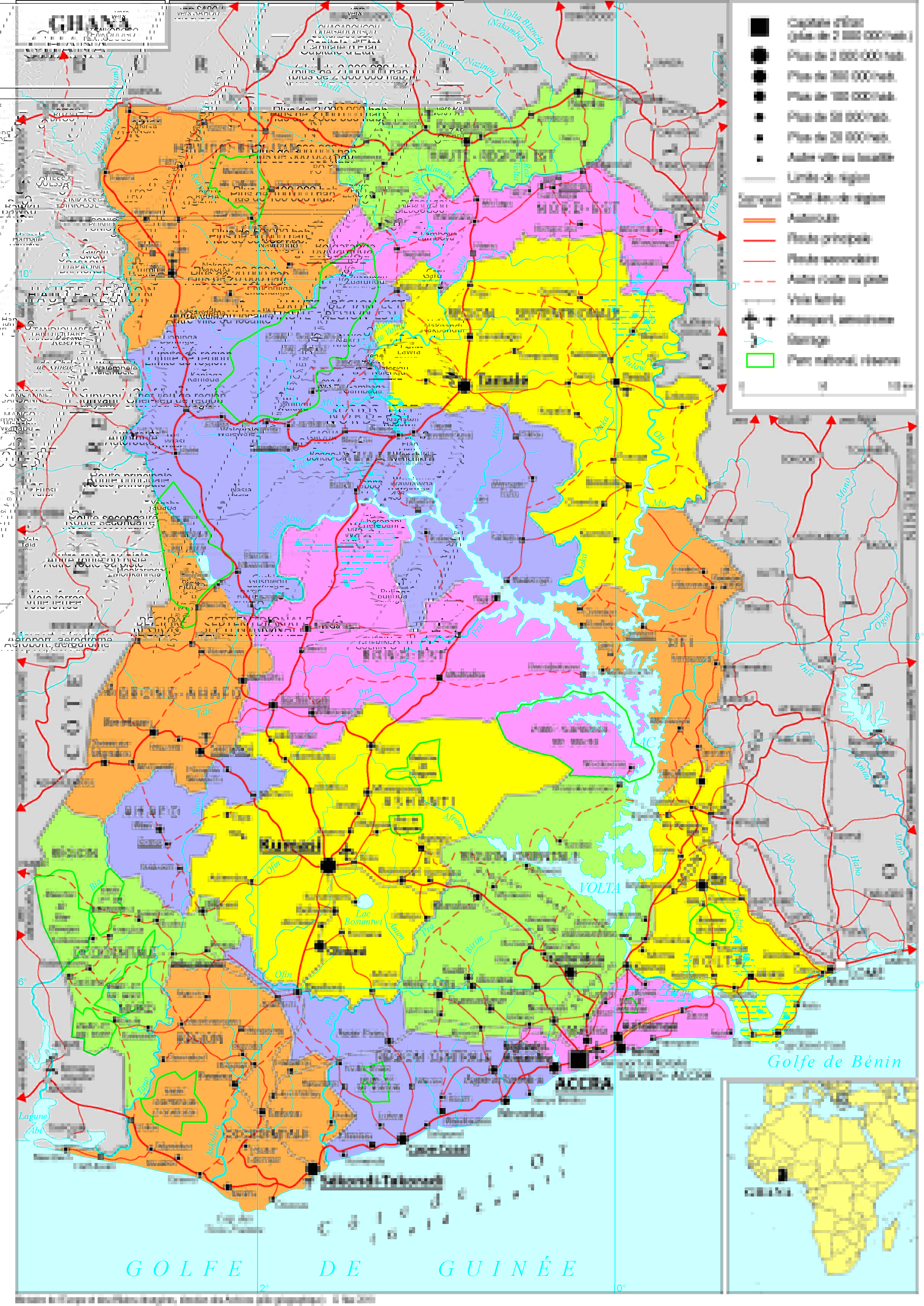 Ghana Navigation latérale fiche pays Dans cette rubrique Ghana Présentation du Ghana Conseils aux voyageurs Dernières minutes et alertes Sécurité Entrée / séjour Santé Informations utiles Voyages d'affaires Contacts utiles Politique et économie Relations bilatérales Présentation du Ghana Date de mise à jour le : 21 janvier 2026 Information toujours valable à la date du jour Présentation du pays Données générales Nom officiel : République du GhanaNature du régime : République Chef de l’Etat : John Dramani Mahama, élu le 7 décembre 2024Chef du gouvernement : John Dramani Mahama Données géographiques Superficie : 238 537 km²Capitale : Accra Villes principales : Kumasi, Sekondi-Takoradi, TamaleLangue officielle : AnglaisLangues nationales : Asante, Ewe, Fante, Boron, Dagomba, Dangme, Dagarte, Kokomba, Akyem, Ga, Haussa.Monnaie : Cédi (taux de change au 30/04/2025 : 1EUR = 16.27 Cédi) Données démographiques Population : 34,1 millions d’habitants (Banque mondiale, 2023) Taux de croissance démographique : 1,9 % (Banque mondiale, 2023)Taux de croissance économique : 3,4% (BAD, 2024)Espérance de vie : 64 ans (Banque mondiale, 2022)Religion : Christianisme 71,2% (Pentecôtisme, Protestantisme, Catholicisme, autres) ; Islam 17,6% ; religions traditionnelles 5,2% ; sans religion 5,3% (Ghana Statistical Service, 2012).Indice de développement humain : 145ème sur 189 pays (PNUD, 2022) Politique intérieure Le dynamisme de la démocratie ghanéenne et son fonctionnement pacifique sont unanimement salués par les observateurs. Le Ghana est actuellement considéré comme l’un des systèmes politiques les plus dynamiques en Afrique de l’Ouest. Depuis la transition démocratique entérinée sous le président Jerry Rawlings en 1992, le pays a connu une série d’alternances pacifiques entre les deux principaux partis politiques, le National Democratic Congress (social-démocrate) et le New Patriotic Party (centre-droit). A Jerry Rawlings (1993-2001, NDC) ont ainsi succédé John Kufuor (2001-2009, NPP), John Atta Mills (2009-2012, NDC), John Dramani Mahama (2012-2016, NDC) Nana Dankwa Akufo-Addo (2016-2024, NPP) et de nouveau John Dramani Mahama depuis janvier 2025. Candidat pour la deuxième fois consécutive depuis 2016, ce dernier est largement élu en 2024 avec 56,5% des voix pour un mandat de quatre ans non renouvelable. Le président Mahama avait axé sa campagne sur les enjeux économiques, pour surmonter la crise économique et financière qui a éclaté en 2022, la bonne gouvernance et la lutte contre la corruption. Politique étrangère Le Ghana bénéficie sur la scène internationale d’une image positive de pays « phare de la démocratie » en Afrique de l’Ouest et investi en faveur du multilatéralisme et de l’intégration régionale, ayant souvent été sollicité en tant que médiateur dans les crises politiques régionales (Libéria, Gambie, Côte d’Ivoire, Togo). Le Ghana a été un membre constructif du Conseil de sécurité de 2021 à 2023. L’Institut Monétaire de l’Afrique de l’Ouest, créé en 2001 pour accompagner le processus de création de cette monnaie, est installé à Accra. Sur le plan continental, Accra accueille le Secrétariat de la Zone de Libre-Echange Continentale africaine (ZLECAF). Entouré de pays francophones, le Ghana compte 633 000 locuteurs francophones (2% de sa population) en 2024 et 10% des effectifs scolaires apprennent le français. Le Ghana a rejoint en octobre 2024 l’Organisation internationale de la Francophonie (OIF) comme membre de plein droit à l’occasion du sommet de Villers-Cotterêts. Le Ghana a également joué un rôle moteur dans le lancement de l’Initiative d’Accra -singulière par sa composition exclusivement africaine - dès 2017 et dans sa réactivation à partir de 2021-2022, pour faire face au risque d’expansion des groupes terroristes vers le nord des pays du golfe de Guinée. Le président Mahama a annoncé vouloir diversifier ses partenariats internationaux en particulier sur le plan économique, en s’ouvrant davantage aux BRICS. Tout en restant attaché au cadre de la CEDEAO, le chef d’Etat ghanéen a également envoyé des signaux d’ouverture à l’Alliance des Etats du Sahel (AES), soulignant dès son investiture la nécessité de travailler avec les tous les pays voisins de la région. Il a nommé un Envoyé spécial pour les Etats de l’AES et a effectué une tournée dans ces trois pays. Situation économique Avec un PIB de 88 Md $ en 2024 et un taux de croissance du PIB à 5,7 % (FMI, 2024), le Ghana se positionne comme la troisième économie de la CEDEAO derrière le Nigéria et la Côte d’Ivoire. L’économie ghanéenne repose essentiellement sur l’exploitation des matières premières- or, pétrole, gaz et cacao - ainsi que sur les services qui soutiennent ces activités. La croissance du Ghana reste vulnérable aux facteurs externes. Suite à la crise économique, Ghana a fait appel au FMI en juillet 2022 (facilité élargie de crédit de 3 Md$ sur trois ans conclue en mai 2023). Le programme soutenu par le FMI vise à (i) rétablir les comptes publics, (ii) restaurer la viabilité de la dette à moyen-terme et (iii) engager le pays vers des réformes structurelles majeures. La situation macro-économique du Ghana est aujourd’hui en cours de stabilisation. Toutefois le renforcement des règles de contenu local pourrait contribuer à une dégradation du climat des affaires. Liste des représentations françaises Ambassade de France au Ghana 4th Circular Road Cantonments Accra Ghana Tel : +233 30 221 45 50 Ambassade de France au Ghana Réseaux sociaux Facebook X Instagram Section consulaire de l’Ambassade de France à Accra 4th Circular Road Cantonments Accra Ghana Tel : (+233) (0) 59 699 34 Ambassade de France au Ghana Réseaux sociaux Facebook X Instagram