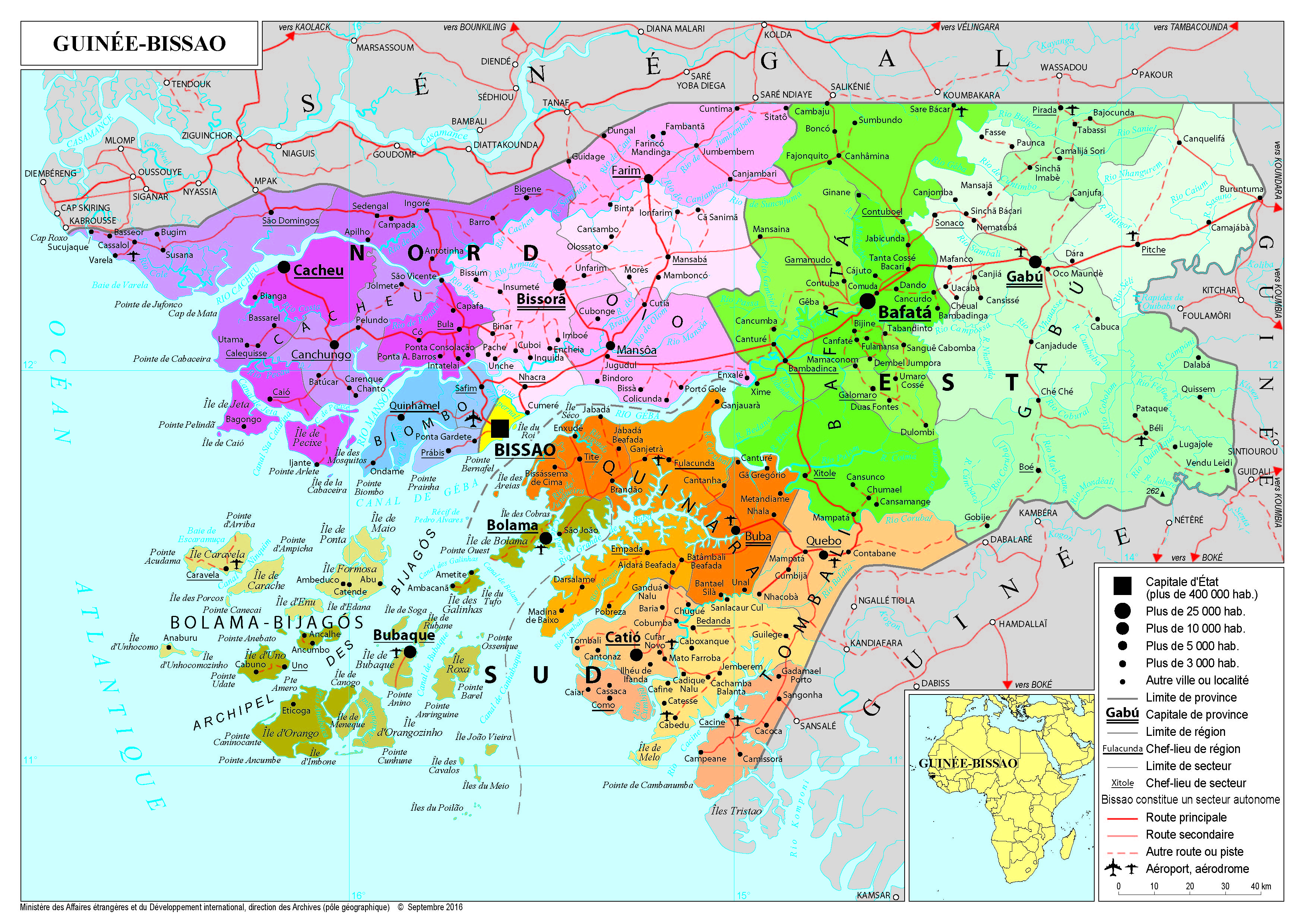 Guinée-Bissao Navigation latérale fiche pays Dans cette rubrique Guinée-Bissao Présentation de la Guinée-Bissao Conseils aux voyageurs Dernières minutes et alertes Sécurité Entrée / séjour Santé Informations utiles Voyages d'affaires Contacts utiles Politique et économie Relations bilatérales Présentation de la Guinée-Bissao Date de mise à jour le : 21 janvier 2026 Information toujours valable à la date du jour Présentation du pays Données générales Nom officiel : République de Guinée-BissaoNature du régime : Régime semi-présidentiel (junte militaire depuis le 26 novembre 2025)Chef de l’État : Général Horta Inta-A (président de la transition)Premier ministre : M. Ilídio Vieira Té Données géographiques Superficie : 36 125 km²Capitale : BissaoVilles principales : Bafata, Gabu, CacheuLangue officielle : PortugaisLangue la plus parlée : Créole portugaisMonnaie : Franc CFA Fête nationale : 24 septembre Données démographiques Population (FMI, 2023) : 1,9 millions d’habitantsCroissance démographique (BM, 2023) : 2,2 %Espérance de vie à la naissance (ONU, 2023) : 64,1 ansTaux d’alphabétisation des adultes (BM, 2022) : 54 %Religion : musulmans (50 %), chrétiens (10 %), animistes (40 %)Indice de développement humain (PNUD, 2022) : 179ème rang sur 193 pays Politique intérieure Depuis son indépendance du Portugal en 1974, la Guinée-Bissao a été marquée par de nombreux coups d’État. En 1998, une tentative de coup a plongé le pays dans une brève mais violente guerre entre différentes factions de l’armée. Ces dernières années, la scène politique s’est structurée autour de l’opposition entre le Parti africain pour l’indépendance de la Guinée et du Cap-Vert (PAIGC), parti historique de la lutte pour l’indépendance, et le MADEM-G15, parti fondé par des dissidents du PAIGC à l’été 2018. Issu de cette deuxième formation, Umaro Sissoco Embaló a remporté le second tour de l’élection présidentielle le 29 décembre 2019. Cette victoire a été contestée par le PAIGC, dont le candidat Domingos Simoes Pereira est arrivé second. Après plusieurs mois de contentieux électoral, la Communauté économique des États de l’Afrique de l’Ouest (CEDEAO) a reconnu la victoire du président Sissoco le 22 avril 2020. En septembre 2020, le Tribunal suprême de justice a finalement clos le contentieux électoral et rejeté les recours de Domingos Simoes Pereira. Suite à une tentative de coup d’État en février 2022, la CEDEAO a envoyé une force d’appui à la stabilisation du pays, à la demande du président Sissoco. Cette force de la CEDEAO est toujours déployée à Bissao. Dans un contexte politique tendu, le président Umaro Sissoco Embaló a dissous l’Assemblée nationale le 16 mai 2022. Les élections législatives qui auraient dû se tenir en décembre 2022 n’ont finalement eu lieu qu’au mois de juin 2023 et ont été remportées par le PAIGC (opposition), mené par Domingos Simões Pereira (54 sièges sur 102 en comptant ses alliés). En août 2023, Geraldo Martins (PAIGC) a été nommé Premier ministre d’un gouvernement de cohabitation alors que M. Pereira, à la tête de l’opposition, a pris la présidence de l’Assemblée nationale. À la suite de la tentative de libération de deux membres du gouvernement le 1er décembre 2023 par la garde nationale, qu’il a qualifiée de coup d’État, le président Sissoco a dissous une nouvelle fois l’Assemblée nationale le 4 décembre 2023 et a nommé peu après M. Rui Duarte Barros (PAIGC) à la tête d’un nouveau gouvernement dit « d’initiative présidentielle ». Le président Sissoco a reporté les élections législatives qui devaient avoir lieu le 24 novembre 2024, puis a annoncé le 7 mars 2025 la tenue des élections législatives et présidentielle pour le 23 novembre 2025, auquel il s’est porté candidat. Au lendemain d’une journée électorale calme malgré l’exclusion des deux principales coalitions d’opposition aux législatives et de Domingos Simões Pereira, principal candidat d’opposition (PAIGC), à la présidentielle, le candidat soutenu par les principales forces d’opposition, Fernando Dias da Costa (indépendant), a revendiqué sa victoire à l’élection présidentielle dès le 24 novembre. Le président Sissoco a fait de même par la voix de son entourage. Le 26 novembre 2025, un groupe d’officiers a pris le pouvoir et a suspendu, puis annulé, le processus électoral. L’opposant Domingos Simões Pereira a été arrêté et le candidat d’opposition Fernando Dias da Costa s’est réfugié à l’ambassade du Nigéria. Arrêté par les officiers, le président déchu Sissoco a rapidement été libéré et a pu quitter le pays : il a été successivement accueilli par le Sénégal, par le Congo, puis par le Maroc. La réalité du coup d’État a toutefois été mise en doute, notamment par l’opposition, qui estime qu’il s’agissait d’une manœuvre du président Sissoco pour ne pas remettre le pouvoir à Fernando Dias da Costa, vainqueur de l’élection présidentielle. De fait, la plupart des personnalités tant militaires que civiles du nouveau régime lui sont réputées proches. Le 27 novembre, le chef d’État-major de l’armée de terre, le major général Horta Inta-A, a prêté serment comme « président de la transition » pour une durée de un an. Le 8 décembre, la junte s’est dotée d’une « charte de la transition », interdisant notamment au président de la transition et à son Premier ministre de se présenter à la prochaine élection présidentielle. La CEDEAO et l’Union africaine ont suspendu la Guinée-Bissao, condamné sans équivoque le coup d’État militaire, appelé au respect du processus électoral et au retour à la normalité constitutionnelle et rejeté le programme de transition annoncé par les putschistes. Une mission de la CEDEAO s’est rendue à Bissao le 