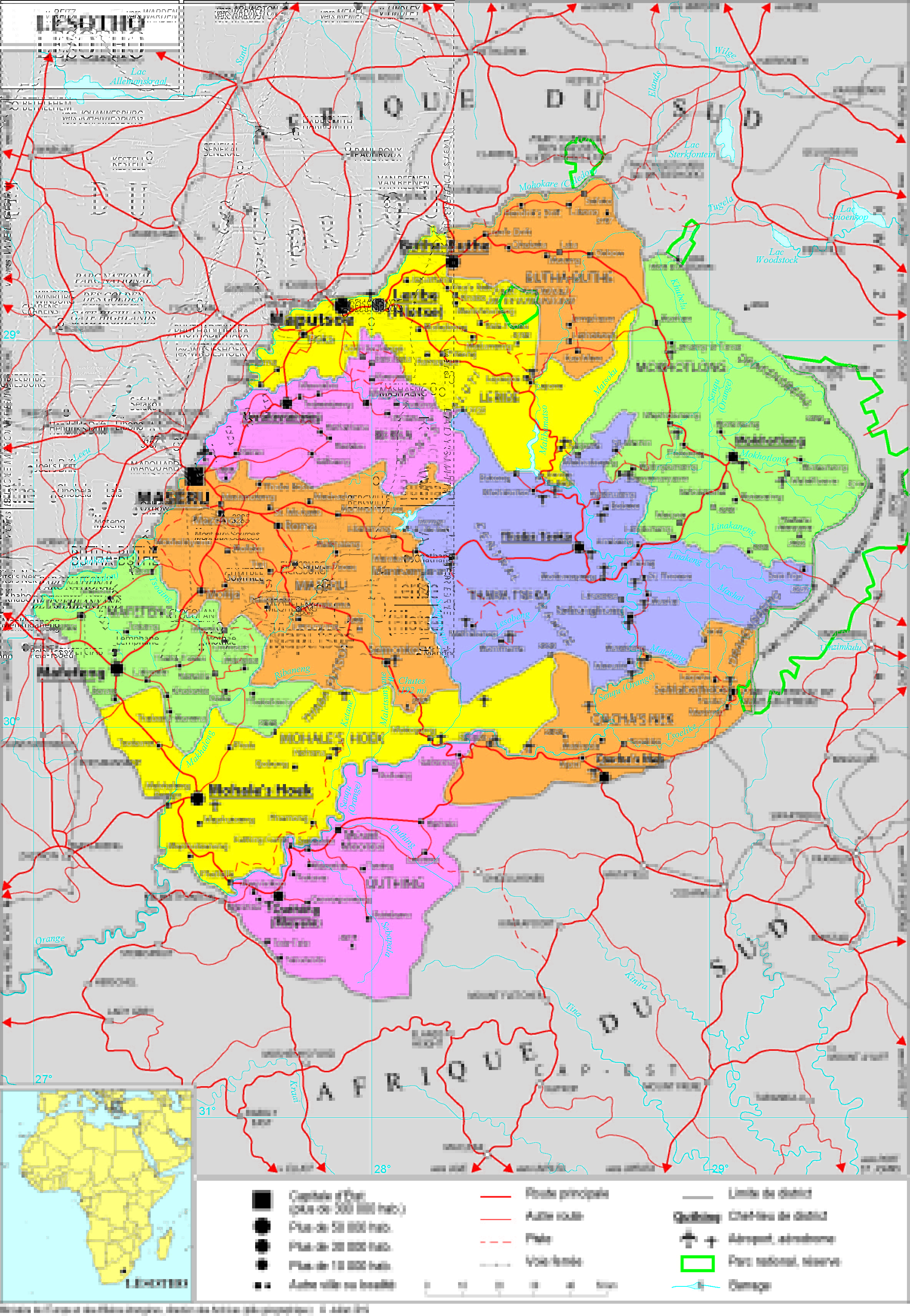 Lésotho Navigation latérale fiche pays Dans cette rubrique Lésotho Présentation du Lésotho Conseils aux voyageurs Dernières minutes et alertes Sécurité Entrée / séjour Santé Informations utiles Voyages d'affaires Contacts utiles Politique et économie Relations bilatérales Présentation du Lésotho Date de mise à jour le : 01 avril 2026 Information toujours valable à la date du jour Présentation du pays Données générales Nom officiel : Royaume du LesothoNature du régime : monarchie constitutionnelleChef de l’État : Roi LETSIE III (depuis le 7 février 1996)Chef du Gouvernement : M. Samuel MATEKANE (depuis le 28 octobre 2022) Données géographiques Superficie : 30.355 km2Capitale : MaseruVilles principales : Maseru, Teyateyaneng, MafetengLangues officielles : anglais et sésothoMonnaie : Loti (LSL) à parité avec le rand sud-africainFête nationale : 4 octobre (indépendance du Royaume-Uni en 1966) Données démographiques Population totale : 2,3 millions d’habitantsCroissance démographique : 1,2%Espérance de vie : 57,4 ansTaux d'alphabétisation : 86%Indice de développement humain : 0,521 ; 168ème/189Religions : chrétiens (90% principalement catholiques et anglicans), autres (10%, dont islam, athéisme, religions traditionnelles) Politique intérieure Ancien protectorat britannique devenu indépendant en 1966, le Lesotho est une monarchie constitutionnelle marquée par une instabilité politique chronique, comptant de multiples tentatives de coups d’État et la chute de quatre gouvernements entre 2013 et 2020. Après quinze ans d’alternance entre le Democratic Congress et la All Basotho Convention, les élections législatives du 7 octobre 2022 ont porté au pouvoir le parti Revolution for Prosperity (RFP), fondé quelques mois plus tôt par l’homme d’affaires Sam Matekane. Les priorités de Sam Matekane sont la lutte contre la corruption et la stabilité économique, afin d’améliorer l’attractivité et de faire reculer la dette publique et le chômage. Politique étrangère Au regard de son enclavement géographique, la politique extérieure du Royaume reste dominée par ses relations avec l’Afrique du Sud et l’environnement régional. La SADC effectue régulièrement des missions de médiation entre partis politiques basothos, voire intervient militairement, comme en 1998 puis en 2017-2018. Elle a impulsé plusieurs initiatives entre 2017-2019 (feuille de route négociée entre les partis de la coalition au pouvoir, déploiement de la SAPMIL, nomination d’un médiateur pour la résolution de la crise, processus de réforme politique, constitutionnelle et du secteur de la sécurité).L’Union européenne est un acteur de poids en matière de coopération au Lesotho. Elle y dispose d’une représentation et entretient des actions de coopération dans les secteurs de l’eau, de l’assainissement, de l’énergie et de la gouvernance. Financé via le NDICI, le programme indicatif pluriannuel (PIP) de l’Union européenne (UE) au Lesotho s’élève à 119 M€ pour 2021-2027. Le Lesotho bénéficie, en tant qu’Etat membre de la SADC, des financements alloués par l’UE, ainsi que de l’accord de partenariat économique (APE) UE-SADC depuis 2016. L’UE entretient un dialogue politique annuel avec le Lesotho, au titre de l’article 8 de l’accord de Cotonou, dont la dernière session s’est tenue en mai 2025 à Maseru. À l'invitation du Lesotho, l'Union européenne a déployé en 2022 sa première mission d'observation électorale (MOE) dans le pays, afin de procéder à une évaluation indépendante et impartiale de tous les aspects du processus électoral des élections de l'Assemblée nationale. Le Lesotho a été durement touché par la suspension de l’aide au développement américaine, décidée en début d’année 2025. En effet, le pays, qui compte près de 25% de sa population positive au VIH, était l’un des principaux bénéficiaires du programme PEPFAR (President's Emergency Plan for AIDS Relief), programme américain d'aide d'urgence à la lutte contre le sida à l'étranger. De même, le Royaume s’était vu imposé un droit de douane de 50% sur ses exportations aux Etats-Unis, tandis que l’AGOA (African Growth and Opportunity Act), accord offrant un accès privilégié au marché américain pour 6 500 produits à des pays d'Afrique subsaharienne éligibles, pas non plus été renouvelé en septembre 2025. Finalement, en décembre 2025, un mémorandum d'entente entre le gouvernement lésothan et l'ambassade américaine en matière d'assistance dans la lutte contre le VIH/Sida et de surveillance épidémiologique a été signé tandis que les droits de douane ont depuis été ramenés à 15% et qu’un renouvellement de l’AGOA pour deux ans semble en bonne voie. Le pays entretient d’autre part de bonnes relations avec la Chine qui dispose, comme les Etats-Unis, d’une ambassade à Maseru ainsi que d’un Institut Confucius. La Chine s’est engagée à apporter une aide alimentaire et médicale au Lesotho et finance des projets de construction d’infrastructures (routes et hôpitaux). Situation économique Le PIB du Lesotho s’élevait à 2,3 Mds USD en 2024, et son PIB par habitant à 974 USD. La croissance du pays, relativement faible, demeure vulnérable aux chocs externes, aux variations des prix des matières premières et aux aléas climatiques. L’économie du Lesotho est très dépendante de la conjoncture des autres pays de la sous-région, en particulier de l’Afrique du Sud, qui fournit 79 % de ses importations et est le débouché de 58 % de ses exportations. Les recettes budgétaires du Lesotho proviennent en grande partie des revenus transférés par l’union douanière SACU (Southern African Customs Union). L’économie lesothane est par ailleurs dépendante des transferts de fonds de sa diaspora, qui ont représenté 19,8 % du PIB du pays en 2024/25, et dont la grande majorité pro