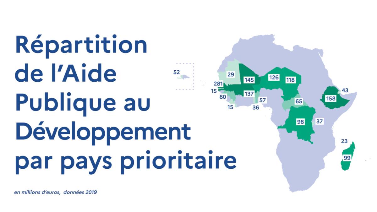 Priorités géographiques Afin d’assurer son efficacité, la politique de développement française s’adapte aux diversités des situations et des besoins de ses pays partenaires. Afrique Aide au développement Solidarité internationale Publié le : 01 avril 2021 Mis à jour le : 24 février 2026 ©Roger Yebuah/MotionArray Dans cette rubrique Le ministère en action Agir pour la paix et le respect des droits de l'homme Agir au sein de l'ONU Agir pour la sécurité, le désarmement et la non-prolifération Apporter une aide humanitaire d'urgence Forum de Paris sur la Paix Promouvoir les droits de l’homme Promouvoir l’égalité entre les femmes et les hommes dans le monde S'engager au sein d'une justice internationale Diplomatie numérique Accompagner les ressortissants français Placer l'information et la prévention au service de la sécurité Répondre aux crises et événements exceptionnels Services et démarches à l'étranger La communauté française à l’étranger en chiffres Le suivi des affaires individuelles sensibles Apporter une expertise médicale et psychologique Promouvoir une Europe souveraine La communauté politique européenne Les grandes politiques internes de l'Union européenne L'Europe de la défense La France et l'Union européenne Dossiers européens Promouvoir les entreprises françaises et l'attractivité de la France Attirer les investissements étrangers Attirer les étudiants internationaux Conforter la France comme première destination touristique Politique commerciale du gouvernement Promouvoir la France dans le domaine du sport Soutenir les chercheurs et la coopération scientifique au niveau international Soutenir les entreprises à l’export La France et ses partenaires économiques, pays par pays (2026) Promouvoir et soutenir l’innovation française Assurer la présence de la culture française Diplomatie culturelle Défendre la francophonie et la langue française Développer la présence de l’audiovisuel français dans le monde La coopération franco-allemande Soutenir les industries culturelles et créatives Contribuer à une mondialisation durable et équilibrée Répondre à l’urgence de la crise climatique et environnementale Lutter contre les inégalités mondiales Travailler avec les ONG et la société civile Mener des actions de coopération Sommets et enjeux globaux Stratégies régionales Sommaire Des financements adaptés au contexte de développement des pays 19 pays prioritaires et une attention particulière portée à l'Afrique Priorité à l’Afrique Les pays prioritaires de l’aide française La France décline son action selon plusieurs partenariats différenciés qui tiennent compte des réalités géographiques des pays partenaires, des instruments (dons et/ou prêts, aide-projet, aide budgétaire, expertise technique) et des secteurs d’intervention les plus adaptés aux besoins des pays. Des financements adaptés au contexte de développement des pays La France concentre son effort de solidarité, en subventions et dons, dans un nombre limité de pays prioritaires, tous des PMA (Pays les Moins Avancés), en particulier en Afrique subsaharienne. Depuis le CICID de 2018, la liste des pays prioritaires comprend 19 pays. Ceux-ci rassemblent les principaux défis en termes de financements nécessaires à l’atteinte des ODD, alors que leur capacité à financer les investissements dans les infrastructures de base est limitée. Ces pays prioritaires bénéficient de la moitié de l’effort en subvention de l’État et des deux tiers des subventions mises en œuvre par l’AFD ; Dans les pays à revenu intermédiaire, la France s’appuie sur des prêts, dont elle se sert pour mobiliser d’autres apports financiers. Elle a développé une gamme d’instruments étendue avec des acteurs non souverains, en particulier le secteur privé, les collectivités locales et les sociétés civiles. 19 pays prioritaires et une attention particulière portée à l'Afrique La France concentre son effort de solidarité en subvention dans 19 pays prioritaires, appartenant tous à la catégorie des pays les moins avancés (PMA), et autour de la mise en œuvre des Objectifs de développement durable (ODD) et de l’Accord de Paris, avec une attention particulière accordée à l’Afrique. Tous ces pays sont en effet situés sur le continent africain, à l’exception d’Haïti. Ils concentrent les financements les plus concessionnels, bénéficiant de la moitié de l’effort en subvention de l’État, et les deux tiers des subventions mises en œuvre par l’AFD. La France s’engage en priorité pour : traiter les situations de fragilité et assurer la paix et la stabilité ; soutenir la grande cause du quinquennat qu’est l’égalité entre les femmes et les hommes ; renforcer les efforts pour l’éducation et la formation professionnelle ; agir pour la lutte contre le changement climatique et la biodiversité ; maintenir une action résolue en faveur de la santé. Priorité à l’Afrique En 2020, 39% de l’APD bilatérale de la France étaient destinés à l’Afrique (3,6 milliards d’euros), dont plus de 80% (2,9 milliards d’euros) sont destinés à l’Afrique subsaharienne. La France a décidé de consacrer au moins 75% de l’effort financier de l’État en subventions et en prêts (hors annulations de dette) et au moins 85% de celui de l’AFD à la zone Afrique et Méditerranée. De plus, sur la période 2014-2020, à travers le 11e Fonds européen de développement (FED) -auquel la France contribue à hauteur de 17,8%- ce sont 17 milliards d’euros qui financent le développement durable en Afrique subsaharienne (sur un budget total de 30,5 milliards d’euros). Les pays prioritaires de l’aide française - CICID du 8 février 2018 : Bénin, Burkina Faso, Burundi, Comores, Djibouti, Éthiopie, Gambie, Guinée, Haïti, Liberia, Madagascar, Mali, Mauritanie, Niger, République centrafricaine, République