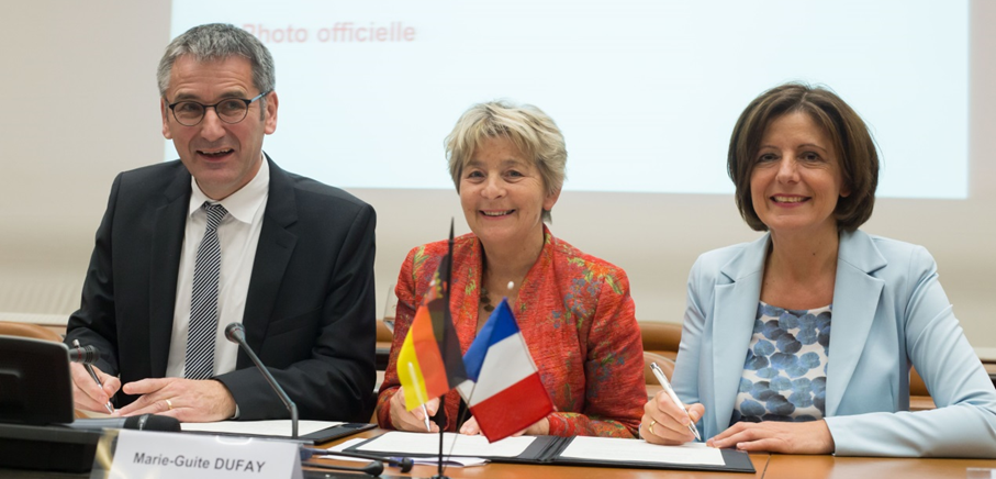 Entre la Bourgogne-Franche-Comté et la Rhénanie-Palatinat, une longue histoire d’amitié et de coopération Depuis plus de 60 ans, la région Bourgogne-Franche-Comté et le land allemand de Rhénanie-Palatinat entretiennent des liens forts et diversifiés. Il s’agit du plus ancien partenariat franco-allemand régional, très dynamique, il ne cesse de s’enrichir. Allemagne Coopération décentralisée Publié le : 05 novembre 2025 Mis à jour le : 10 mars 2026 Dans cette rubrique Le ministère en action Agir pour la paix et le respect des droits de l'homme Agir au sein de l'ONU Agir pour la sécurité, le désarmement et la non-prolifération Apporter une aide humanitaire d'urgence Forum de Paris sur la Paix Promouvoir les droits de l’homme Promouvoir l’égalité entre les femmes et les hommes dans le monde S'engager au sein d'une justice internationale Diplomatie numérique Accompagner les ressortissants français Placer l'information et la prévention au service de la sécurité Répondre aux crises et événements exceptionnels Services et démarches à l'étranger La communauté française à l’étranger en chiffres Le suivi des affaires individuelles sensibles Apporter une expertise médicale et psychologique Promouvoir une Europe souveraine La communauté politique européenne Les grandes politiques internes de l'Union européenne L'Europe de la défense La France et l'Union européenne Dossiers européens Promouvoir les entreprises françaises et l'attractivité de la France Attirer les investissements étrangers Attirer les étudiants internationaux Conforter la France comme première destination touristique Politique commerciale du gouvernement Promouvoir la France dans le domaine du sport Soutenir les chercheurs et la coopération scientifique au niveau international Soutenir les entreprises à l’export La France et ses partenaires économiques, pays par pays (2026) Promouvoir et soutenir l’innovation française Assurer la présence de la culture française Diplomatie culturelle Défendre la francophonie et la langue française Développer la présence de l’audiovisuel français dans le monde La coopération franco-allemande Soutenir les industries culturelles et créatives Contribuer à une mondialisation durable et équilibrée Répondre à l’urgence de la crise climatique et environnementale Lutter contre les inégalités mondiales Travailler avec les ONG et la société civile Mener des actions de coopération décentralisée Sommets et enjeux globaux Stratégies régionales Le partenariat Signé en 1962 (et renouvelé en 2016 pour y inclure l’ex-région Franche-Comté dans le cadre de la nouvelle région), le partenariat entre la Bourgogne-Franche-Comté et la Rhénanie-Palatinat est le plus ancien jumelage franco-allemand régional. Il a été conclu avant même la signature du traité de l’Elysée. Au fil des années, le partenariat s’est étoffé et de nombreuses actions ont été mises en place, dans les domaines de l’éducation, de la jeunesse, de la culture, ou encore, plus récemment, en matière de transition énergétique. Les différents échanges mis en œuvre ont ainsi associé un nombre croissant d’acteurs régionaux, français comme allemands, et ont permis à ce jumelage de s’ancrer véritablement dans la vie citoyenne des deux régions. En effet, il existe aujourd’hui plus de 140 jumelages entre des communes de Bourgogne-Franche-Comté et de Rhénanie-Palatinat. Conseil régional de Bourgogne-Franche-Comté Conseil régional de Bourgogne-Franche-Comté Transcription Fermer la transcription Marie-Guite DUFAY accueille Malu DREYER Ministre-Présidente du Land de Rhénanie-Palatinat et Hendrik HERING Président du Landtag de Rhénanie-Palatinat, lors de la cérémonie en l’honneur du partenariat entre les deux régions, le 1er novembre 2016 Les objectifs Ce jumelage vise à répondre plus efficacement, dans un cadre européen, aux défis communs auxquels font face les régions, sur des sujets ayant trait tant à la mobilité et la formation des jeunes qu’aux politiques de transition écologique ou d’attractivité du territoire. Une des grandes forces de ce partenariat est qu’il a su se réinventer au fil du temps afin d’apporter des réponses aux enjeux d’avenir par des échanges de pratiques sur les politiques territoriales et une mise en relation des acteurs des deux régions. La célébration en 2002 des 50 ans du partenariat a d’ailleurs permis de mesurer l’importance et la diversité des acteurs impliqués : associations, rectorats, collectivités territoriales, comités de jumelages… Les outils Au fil du temps, le jumelage s’est révélé particulièrement dynamique et s’est doté d’outils. Ainsi, en 1991 et 1994, ont été inaugurées respectivement la Maison de Rhénanie-Palatinat à Dijon et la Maison de Bourgogne à Mayence, rebaptisée aujourd’hui Maison de Bourgogne-Franche-Comté. Celles-ci ont permis aux deux régions de travailler et d’échanger au quotidien et ont constitué une matérialisation des liens profonds qui unissent les deux territoires. Un bureau des stages a également été créé dès 1999 au sein des deux représentations afin de faciliter la mobilité professionnelle des jeunes. Par ailleurs, les deux régions ont également signé des déclarations communes ou protocoles d’accords complémentaires à partir des années 2000 afin d’affirmer leur volonté de coopérer dans des domaines plus spécifiques : en 2000 pour la culture, en 2014 pour la protection des plantes et la viticulture biologique, et en 2017 pour la transition énergétique et la protection du climat. Rahel, jeune allemande qui participe depuis septembre 2018 au programme de volontariat culturel franco-allemand de la maison de Rhénanie-Palatinat chez Latitude21, maison de l’architecture et de l’environnement du Grand Dijon©Maison de Rhénanie-Palatinat Les résultats De nombreuses réalisat