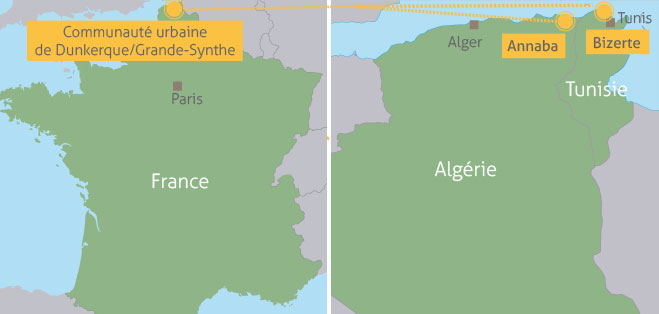 Communauté urbaine de Dunkerque et ville de Grande-Synthe – ville d’Annaba (Algérie) – ville de Bizerte (Tunisie) : échanger sur le rôle des territoires dans la lutte contre le dérèglement climatique La température moyenne du globe augmente en raison de l’activité humaine (industrie, transport, déforestation, habitat…), et de l’utilisation d’énergies fossiles (pétrole, gaz naturel, charbon…). La hausse de la température a des conséquences sur le climat : montée des eaux, sécheresses, cyclones… et sur le vivant : disparition d’espèces, réduction des rendements agricoles… On considère qu’une augmentation de 2°C aurait des conséquences limitées. Dans ce contexte, les collectivités territoriales luttent à leur niveau, par exemple, en encourageant les transports en commun, en aidant à l’efficacité énergétique des bâtiments, en promouvant les énergies renouvelables…La communauté urbaine de Dunkerque (CUD), les villes de Grande-Synthe, d’Annaba et de Bizerte, qui sont toutes les trois des agglomérations littorales, portuaires et industrielles, ont décidé de s’associer autour du projet CLIMED pour appréhender ensemble les conséquences du dérèglement climatique et rechercher des solutions. Nous avons rencontré Mohamed Riadh Lazzem, le maire de Bizerte et co-porteur du projet CLIMED, lors de la table ronde "Les collectivités locales s’engagent pour le climat" organisée le 5 décembre dans le cadre de la COP21, au Bourget. Algérie Coopération décentralisée Publié le : 04 novembre 2025 Mis à jour le : 11 mars 2026 Dans cette rubrique Le ministère en action Agir pour la paix et le respect des droits de l'homme Agir au sein de l'ONU Agir pour la sécurité, le désarmement et la non-prolifération Apporter une aide humanitaire d'urgence Forum de Paris sur la Paix Promouvoir les droits de l’homme Promouvoir l’égalité entre les femmes et les hommes dans le monde S'engager au sein d'une justice internationale Diplomatie numérique Accompagner les ressortissants français Placer l'information et la prévention au service de la sécurité Répondre aux crises et événements exceptionnels Services et démarches à l'étranger La communauté française à l’étranger en chiffres Le suivi des affaires individuelles sensibles Apporter une expertise médicale et psychologique Promouvoir une Europe souveraine La communauté politique européenne Les grandes politiques internes de l'Union européenne L'Europe de la défense La France et l'Union européenne Dossiers européens Promouvoir les entreprises françaises et l'attractivité de la France Attirer les investissements étrangers Attirer les étudiants internationaux Conforter la France comme première destination touristique Politique commerciale du gouvernement Promouvoir la France dans le domaine du sport Soutenir les chercheurs et la coopération scientifique au niveau international Soutenir les entreprises à l’export La France et ses partenaires économiques, pays par pays (2026) Promouvoir et soutenir l’innovation française Assurer la présence de la culture française Diplomatie culturelle Défendre la francophonie et la langue française Développer la présence de l’audiovisuel français dans le monde La coopération franco-allemande Soutenir les industries culturelles et créatives Contribuer à une mondialisation durable et équilibrée Répondre à l’urgence de la crise climatique et environnementale Lutter contre les inégalités mondiales Travailler avec les ONG et la société civile Mener des actions de coopération décentralisée Sommets et enjeux globaux Stratégies régionales Contexte et enjeux du projet CLIMED En Europe, le rôle des territoires dans la lutte contre le dérèglement climatique est un sujet bien intégré, il doit encore progresser en Afrique du Nord. La loi française oblige en effet les grandes collectivités à se doter de plans climat visant à réduire leur consommation énergétique ainsi que leurs émissions de gaz à effet de serre et à mobiliser et soutenir les acteurs de terrain. Ce type d’outils pourrait être diffusé au Maghreb. Par contre, une certaine culture de la récupération et de la réparation est encore en cours au Maghreb. Bénéfique pour le climat, elle n’est pas forcément identifiée en tant que telle. Le projet souhaite mieux identifier les pratiques, les valoriser et les transférer sur les territoires partenaires au Nord. L’impact des actions est réel, aussi bien au sein des populations du Sud que de celles du Nord, c’est là une caractéristique essentielle des projets de coopération décentralisée : la réciprocité entre territoires. La CUD et Grande-Synthe disposent d’une bonne expertise dans la lutte contre le dérèglement climatique. En effet, le premier Plan Climat Énergie Territorial (PCET) de la CUD a été mis en œuvre sur la période 2009-2014 avec une notation à 76.5 % par le label Cit’ergie Gold porté par l’ADEME. Le premier "learning-center" sur la ville durable, qui vient d’ouvrir à Dunkerque, offre 1200m² d’espace à de nombreux évènements relatifs à cette question. Quant à Grande-Synthe, capitale française de la bio-diversité en 2010, elle vient d’atteindre 100 % d’électricité verte dans ses bâtiments communaux et vise les 45 % de réduction d’émission de CO2 pour 2020. C’est en 2004 que le premier partenariat de coopération décentralisée est signé. Depuis, de nombreux projets d’appui au développement urbain intégré ont été menés ainsi qu’un plus large engagement de la société civile en étendant les axes de coopération à la culture et l’économie. Aujourd’hui, les partenaires souhaitent renforcer leurs relations dans le cadre d’un projet opérationnel. La question climatique étant par nature transnationale, elle se prête à une coopération entre territoires particulièrement dans des contextes industrie
