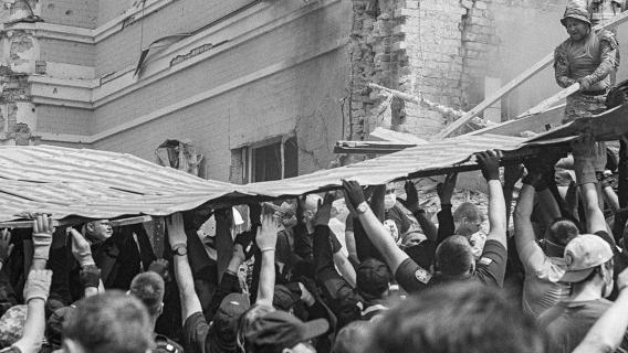 Regarde l’Ukraine - Récit fracturé de l’indépendance de l’Ukraine par Oleksandr Glyadyelov L’exposition est visible à Paris, sur les grilles du Quai d’Orsay, jusqu’au mois de mai 2026, puis sur les grilles du ministère, au 27 Rue de la Convention, 75015 Paris jusqu’au mois d’août 2026. Ukraine Conflits Publié le : 02 février 2026 Mis à jour le : 02 mars 2026 © Oleksandr Glyadyelov / Institut français Dans cette rubrique Le ministère en action Agir pour la paix et le respect des droits de l'homme Agir au sein de l'ONU Agir pour la sécurité, le désarmement et la non-prolifération Apporter une aide humanitaire d'urgence Forum de Paris sur la Paix Promouvoir les droits de l’homme Promouvoir l’égalité entre les femmes et les hommes dans le monde S'engager au sein d'une justice internationale Diplomatie numérique Accompagner les ressortissants français Placer l'information et la prévention au service de la sécurité Répondre aux crises et événements exceptionnels Services et démarches à l'étranger La communauté française à l’étranger en chiffres Le suivi des affaires individuelles sensibles Apporter une expertise médicale et psychologique Promouvoir une Europe souveraine La communauté politique européenne Les grandes politiques internes de l'Union européenne L'Europe de la défense La France et l'Union européenne Dossiers européens Promouvoir les entreprises françaises et l'attractivité de la France Attirer les investissements étrangers Attirer les étudiants internationaux Conforter la France comme première destination touristique Politique commerciale du gouvernement Promouvoir la France dans le domaine du sport Soutenir les chercheurs et la coopération scientifique au niveau international Soutenir les entreprises à l’export La France et ses partenaires économiques, pays par pays (2026) Promouvoir et soutenir l’innovation française Assurer la présence de la culture française Diplomatie culturelle Défendre la francophonie et la langue française Développer la présence de l’audiovisuel français dans le monde La coopération franco-allemande Soutenir les industries culturelles et créatives Contribuer à une mondialisation durable et équilibrée Répondre à l’urgence de la crise climatique et environnementale Lutter contre les inégalités mondiales Travailler avec les ONG et la société civile Mener des actions de coopération décentralisée Sommets et enjeux globaux Stratégies régionales « Le voyage en Ukraine – saison de l’Ukraine en France » est une manifestation culturelle, organisée par l’Institut français et l’Institut ukrainien entre décembre 2025 et août 2026. Elle se déploie à travers la France avec une programmation mettant en avant la langue et la culture ukrainiennes comme espace de résistance, de dialogue et d’engagement. L’exposition propose une traversée sensible de l’histoire de l’Ukraine, de l’indépendance acquise en 1991 à la guerre en cours. Face à la guerre, la population ukrainienne se révèle résiliente, solidaire et profondément humaine. Ce récit est porté par le regard du photographe ukrainien Oleksandr Glyadyelov, figure majeure de la photographie documentaire contemporaine. Depuis plus de trente-cinq ans, son travail accompagne les grandes ruptures de l’histoire post-soviétique et ukrainienne, de l’effondrement de l’Union soviétique aux conflits actuels. Par une approche humaniste et un usage exigeant du noir et blanc, il saisit l’épaisseur humaine des événements, les espoirs, les désillusions et la persistance de la vie face à la violence. Il dessine la longue recherche d’indépendance, de liberté et de souveraineté du peuple ukrainien. En résonance avec l’esprit de la saison Le Voyage en Ukraine, l’exposition « Regarde l’Ukraine » constitue un appel à une solidarité consciente et durable envers une société qui, au coeur de l’épreuve, continue de créer, de résister et d’affirmer son identité. Exposition "Regarde l'Ukraine" Les habitants de Kyiv dégagent les décombres après un bombardement russe sur l’hôpital pour enfants Okhmatdyt. Kyiv, juillet 2024. Grève de la faim lors de la Révolution de Granit, dont les principales revendications étaient la non-signature du nouveau traité de l’Union avec l’URSS, la démission de Vitaliy Masol, chef du gouvernement communiste. Ces revendications ont été satisfaites Un char russe détruit près du village de Kamianka, dans la région de Kharkiv. Décembre 2023. Le 1er septembre, rentrée scolaire dans le village de Broustoury. Région de Transcarpatie, 2003. Une colonne d’étudiants se dirige vers l’Université nationale Taras Chevtchenko, aux premiers jours de la Révolution orange. Les Ukrainiens protestaient contre la falsification des résultats de l’élection présidentielle. Kyiv, novembre 2004. Centre commercial « Rétroville » après un bombardement par un missile balistique russe. Kyiv, mars 2022. Fermer Exposition "Regarde l'Ukraine" Les habitants de Kyiv dégagent les décombres après un bombardement russe sur l’hôpital pour enfants Okhmatdyt. Kyiv, juillet 2024. Grève de la faim lors de la Révolution de Granit, dont les principales revendications étaient la non-signature du nouveau traité de l’Union avec l’URSS, la démission de Vitaliy Masol, chef du gouvernement communiste. Ces revendications ont été satisfaites Un char russe détruit près du village de Kamianka, dans la région de Kharkiv. Décembre 2023. Le 1er septembre, rentrée scolaire dans le village de Broustoury. Région de Transcarpatie, 2003. Une colonne d’étudiants se dirige vers l’Université nationale Taras Chevtchenko, aux premiers jours de la Révolution orange. Les Ukrainiens protestaient contre la falsification des résultats de l’élection présidentielle. Kyiv, novembre 2004. Centre commercial « Rétroville » après un bombardement par un