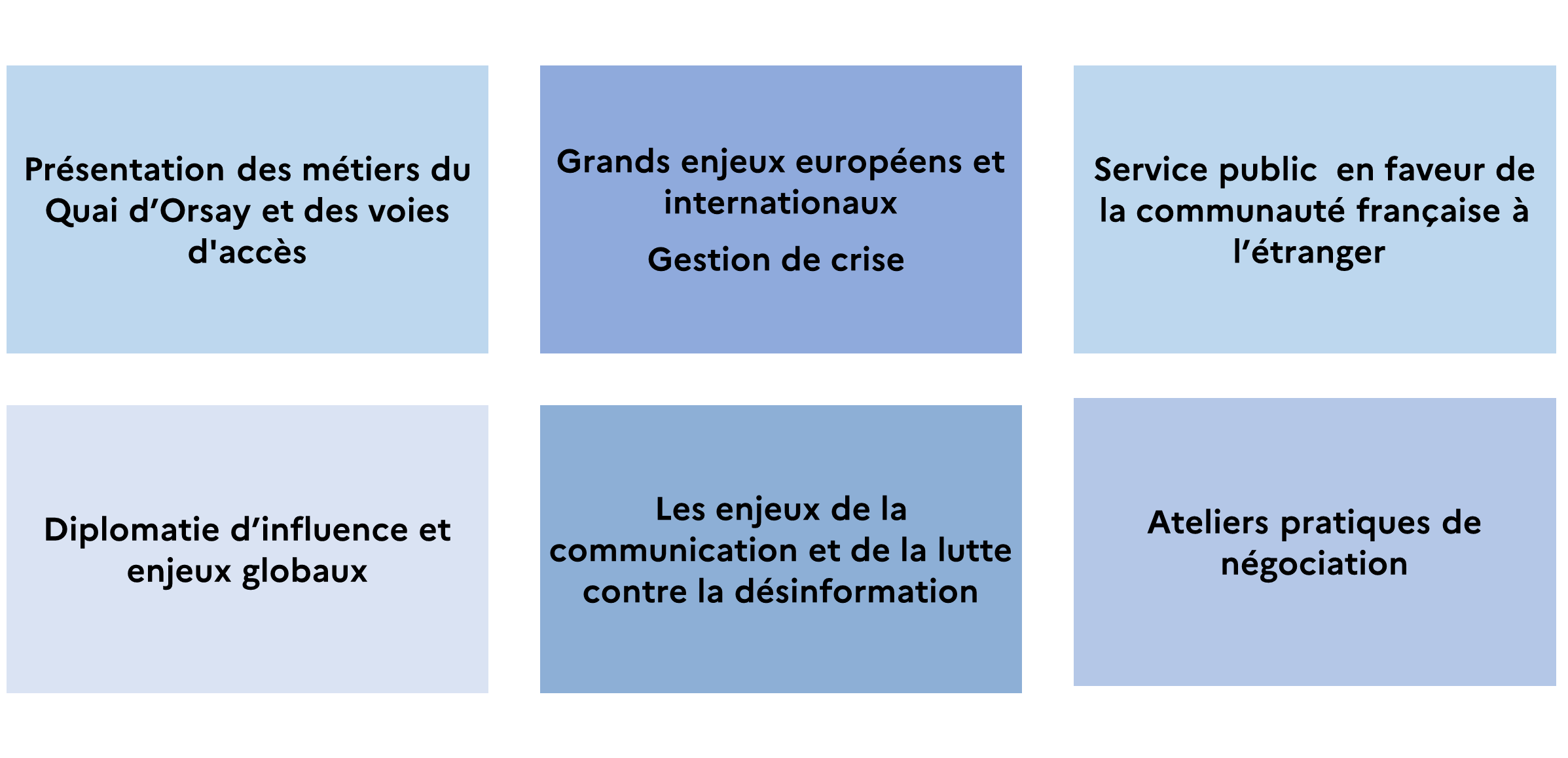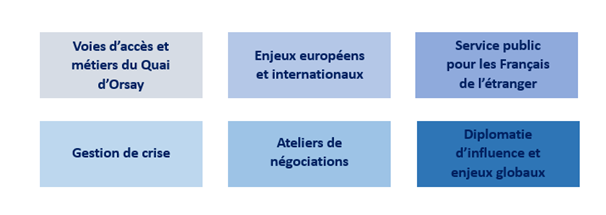 Académie diplomatique d’été Créée en 2021, l’Académie diplomatique d’été (ADE) fait découvrir les métiers et les missions de la diplomatie à une centaine de lycéens et étudiants boursiers. Elle se déroule chaque année à la première semaine du mois de juillet, sur le site des Archives diplomatiques de La Courneuve. L’ADE compte actuellement un réseau de plus de 700 alumni. Emploi Publié le : 09 décembre 2025 Mis à jour le : 27 mars 2026 ©Judith Litvine/MEAE Dans cette rubrique Administration Centre de crise et de soutien Accompagner les opérateurs de l’État et les entreprises Faire connaître les services : Conseils aux voyageurs et Fil d’Ariane Stabiliser les pays en sortie de crise Centre d'analyse, de prévision et de stratégie Centre d’analyse de prévision et de stratégie (CAPS) : 50 ans d’histoire Le réseau du CAPS Podcast « Sources diplomatiques » nouvelle série : Book Club du CAPS Programme d’invitation des personnalités d’avenir (PIPA) Protocole d’État et des événements diplomatiques Direction des affaires juridiques Les accords et traités internationaux Académie diplomatique et consulaire Académie diplomatique d’été Collège des hautes études de l’Institut diplomatique La Fabrique de la diplomatie Le Prix de thèse de l’Académie diplomatique Le Prix du Quai d’Orsay Le Prix du mémoire sur la Chine contemporaine Les Petits et Grands Séminaires Réserve diplomatique citoyenne Sommaire Aller chercher les futurs talents de la diplomatie Le mot du directeur de l’Académie diplomatique et consulaire Édition 2026 Retour sur les éditions 2024 et 2025 : programme et chiffres clés Aller chercher les futurs talents de la diplomatie L’Académie diplomatique d’été s’adresse aux jeunes ayant un intérêt pour les questions européennes et internationales et qui envisagent d’intégrer le ministère ou faire une carrière à l’international. L’objectif est ainsi de susciter des vocations et d’enrichir un vivier de futurs diplomates représentatifs de notre société. Organisé par l’Académie diplomatique et consulaire (ADC), l’Académie diplomatique d’été (ADE) rassemble chaque année des lycéens et d’étudiants français de métropole et d’outremer, retenus sur des critères sociaux (bourses) et sur l’excellence de leur parcours scolaire et universitaire. Pleinement résolu à promouvoir la diversité, le ministère de l’Europe et des Affaires étrangères (MEAE) s’engage, avec ce programme, à aller chercher les futurs talents de la diplomatie partout où ils se trouvent. Le nombre de places est limité à 100. Le programme est accessible aux personnes en situation de handicap et se déroule en présentiel. À l’issue de leur formation, les académiciennes et les académiciens intègrent un réseau d’alumni avec lesquels le MEAE entretient une relation privilégiée dans la durée. Pour ce faire, il propose des offres de stages, de vacations et une année de mentorat dans la foulée de la participation à l’ADE. A la fin du programme, chaque participant reçoit un certificat « Les talents de la diplomatie » Le mot du directeur de l’Académie diplomatique et consulaire Pour sa sixième édition, l’Académie diplomatique d’été du ministère accueillera du 6 au 10 juillet 2026, 100 lycéens et étudiant originaires de toutes les régions de France y compris nos outre-mers et de nos établissements à l’étranger. Comme pour les années précédentes, deux critères sont retenus : vous devez être boursier et pouvoir attester d’un parcours académique d’excellence. A travers l’Académie diplomatique d’été, le Ministère de l’Europe et des Affaires étrangères s’ouvre à vous, pour trouver les talents de la diplomatie de demain, mais aussi pour vous accompagner dans votre orientation car depuis l’édition 2025, l’académie diplomatique d’été se prolonge par un mentorat d’un an assuré par un agent du ministère ou d’un des opérateurs du ministère ou encore d’un cadre d’une entreprise française orientée à l’export.Venez à la rencontre des femmes et des hommes d’un ministère au service de la paix, de la coopération et de la défense de nos valeurs et de nos intérêts dans un monde en tension dans lequel la France assume, plus que jamais, sa singularité tout particulièrement en 2026, année de la présidence française du G7.Et je n’ai pas de doute qu’au terme de cette semaine, vous aurez plus que jamais envie de nous rejoindre ! Didier Le Bret, Directeur de l’Académie diplomatique et consulaire Édition 2026 Programme prévisionnel Le programme se déroulera tout au long de la semaine et alternera présentations, témoignages et exercices pratiques, autour des thématiques suivantes : Procédure de candidature : période du 16 mars au 15 avril 2026 « Afin de candidater à la 6ème édition de l’Académie diplomatique d’été, vous pouvez déposer une candidature en ligne sur « demarche.numérique.gouv.fr », à partir de ce lien : demarche.numérique.gouv.fr Pour toute demande d’information, vous pouvez envoyer un message à : ade.dga-adc chez diplomatie.gouv.fr Retour sur les éditions 2024 et 2025 : programme et chiffres clés « A travers l’Académie diplomatique d’été, le ministère de l’Europe et des Affaires étrangères s’ouvre à vous, pour trouver les talents de la diplomatie de demain, mais aussi pour vous accompagner dans votre orientation et vous aider à découvrir nos métiers. » Jean-Noël Barrot, ministre de l'Europe et des Affaires étrangères Télécharger le mot du Ministre PDF - 156.4 KB ADE 2025 - message du Ministre Tenu du 30 juin au 4 juillet 2025, les participants de la 5ème édition ont pu bénéficier d’un programme riche alternant présentations, témoignages et exercices pratiques, autour des thématiques suivantes : Quelques chiffrés clés sur le profil des particip