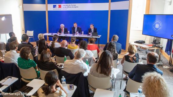 Collège des hautes études de l’Académie diplomatique Pour mieux comprendre le monde, la diplomatie et l’action internationale de la France, rejoignez le cercle de ceux qui la mettent en œuvre au quotidien. Le ministère et son réseau Publié le : 29 mars 2019 Mis à jour le : 13 février 2026 Dans cette rubrique Administration Centre de crise et de soutien Accompagner les opérateurs de l’État et les entreprises Faire connaître les services : Conseils aux voyageurs et Fil d’Ariane Stabiliser les pays en sortie de crise Centre d'analyse, de prévision et de stratégie Centre d’analyse de prévision et de stratégie (CAPS) : 50 ans d’histoire Le réseau du CAPS Podcast « Sources diplomatiques » nouvelle série : Book Club du CAPS Programme d’invitation des personnalités d’avenir (PIPA) Protocole d’État et des événements diplomatiques Direction des affaires juridiques Les accords et traités internationaux Académie diplomatique et consulaire Académie diplomatique d’été Collège des hautes études de l’Institut diplomatique La Fabrique de la diplomatie Le Prix de thèse de l’Académie diplomatique Le Prix du Quai d’Orsay Le Prix du mémoire sur la Chine contemporaine Les Petits et Grands Séminaires Réserve diplomatique citoyenne Sommaire Le cycle Galerie photos Association des anciens auditeurs – ACHEAD Devenir auditeur Informations utiles Le Collège des Hautes études de l’Académie Diplomatique (CHEAD) est né d’une demande émanant de personnalités de la vie publique et du secteur privé : maîtriser la complexité des problèmes internationaux et mieux connaître les rouages de l’activité diplomatique. Avec ce programme, le Ministère de l’Europe et des Affaires étrangères (MEAE) ouvre ses portes à des décideurs issus de tous les horizons, qui pourront découvrir ses métiers, tirer profit de son expertise, en comprendre la culture et ainsi participer pleinement au rayonnement de l’action extérieure de la France.Créé en 2019, le CHEAD compte plus de 250 anciens et actuels auditeurs. Après le cycle, chaque auditeur peut continuer à nourrir leur réseau diplomatique par l’intermédiaire de l’Association des anciens auditeurs du CHEAD (ACHEAD). *D’abord dénommé Collège des Hautes Études de l’Institut Diplomatique (CHEID), il poursuit, depuis 2024, sa mission sous le nom de CHEAD. Le cycle Le CHEAD vous propose de plonger, pendant un an, au cœur des grands enjeux internationaux, aux côtés de celles et ceux qui pilotent la politique étrangère de la France. En rejoignant le CHEAD, vous allez : Comprendre les réalités de l’action extérieure française, en accédant aux analyses stratégiques du Quai d’Orsay et en explorant l’impact concret de la diplomatie sur les grands équilibres mondiaux ; Échanger avec des diplomates et des experts, pour saisir de l’intérieur les mécanismes de décision, les responsabilités diplomatiques et les pratiques des métiers de la diplomatie ; Renforcer vos compétences et élargir vos connaissances en relations internationales, afin de mieux décrypter les enjeux mondiaux, comprendre les logiques de l’action diplomatique et nourrir votre réflexion sur les grandes questions européennes et internationales ; Intégrer un réseau prestigieux d’anciens auditeurs et de professionnels d’influence. Voir la vidéo de présentation du CHEAD : Téléchargez la plaquette du Collège des hautes études de l’Académie diplomatique PDF - 1 163.4 KB Téléchargez le programme de la session 2025 (PDF - 303 Ko) PDF - 303.6 KB Galerie photos Crédits : Jonathan Sarago / MEAE Crédits : Jonathan Sarago / MEAE Crédits : MEAE Crédits : MEAE Fermer Galerie photos Crédits : Jonathan Sarago / MEAE Crédits : Jonathan Sarago / MEAE Crédits : MEAE Crédits : MEAE Le cycle est sanctionné par un certificat remis par le Ministre et permet d’accéder au réseau des anciens auditeurs et anciennes auditrices du Collège des Hautes études de l’Académie diplomatique. • Arrêté de sortie des auditeurs de la première session du CHEID (promotion Christophe Quentel)• Arrêté de sortie des auditeurs de la deuxième session du CHEID (promotion Joséphine Baker)• Arrêté de sortie de sortie des auditeurs de la troisième session du CHEID (promotion Hubert Germain) Association des anciens auditeurs – ACHEAD Vous êtes auditeur du CHEAD et souhaitez le rester ? L’aventure continue avec l’ACHEAD ! Après une année exigeante et enrichissante, restez au cœur des dynamiques internationales grâce à l’association des alumnis du CHEAD. L’ACHEAD organise régulièrement des conférences de haut niveau et propose des moments privilégiés de convivialité entre promotions. En tant que membre, vous bénéficiez d’échanges exclusifs avec des diplomates du Quai d’Orsay, des représentants étrangers et des experts de renom. Aussi, vous continuerez à être conviés aux évènements majeurs du Ministère de l’Europe et des Affaires étrangères. Le bureau de l’association Nadia Maïzi, Présidente Caroline Fusibet, Vice-présidente Guillaume Bonnard, Trésorier Michèle Balourd, Secrétaire générale Suivez l’ACHEAD sur LinkedIn : https://www.linkedin.com/groups/9073116/ L’organisation de chaque cycle est conçue de manière à être compatible avec l’exercice d’activités professionnelles, en prenant pleinement en considération les contraintes et l’agenda particulièrement chargé des auditeurs. Réparti sur une année civile complète, le programme s’articule autour de 3 formats : Des séminaires variés, organisés sur les différents sites du Ministère et animés par des cadres dirigeants du Ministère de l’Europe et des Affaires étrangères (MEAE), des diplomates en poste et des experts extérieurs de haut niveau. Des voyages de promotion dans des villes en France et en Europe, pour explorer les institutions européennes et/ou les services déc