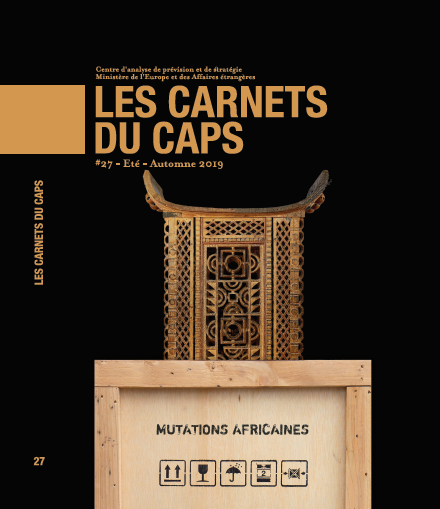 Les Carnets du CAPS n°27 – Mutations africaines Afrique Enjeux globaux Date de publication : Été - Automne 2019 Dernière mise à jour le : 09 février 2026 L ’Afrique est un continent aux populations jeunes, et qui se rajeunissent. C’est bien le premier, mais non le seul, des traits marquants d’un continent sur lequel se penchent les diplomaties du monde entier, en cherchant à adapter la défense de leurs intérêts (géopolitiques, sécuritaires, économiques, consulaires, etc.) à ce monde en profonde mutation. Télécharger l'Avant-propos du ministre PDF - 65.6 KB Télécharger la Préface PDF - 68.2 KB Mutations africaines L’art des « sardines » : fraude et encadrement électoral en Afrique Cameroun : l’opportunité d’une transformation politique Pour vivre heureux vivons cachés ? La politique américaine au Sahel La portée limitée du réinvestissement russe en Afrique subsaharienne Radioscopie de la relation Chine-Afrique vue par ses chercheurs De Serval à Barkhane, quels bilans pour quels enseignements ? Le pentecôtisme et les Églises du Réveil au Gabon Télécharger « Verba volant, scripta manent » : le patrimoine écrit comme atout PDF - 139.1 KB Les mercredis de l’Afrique du caps : le Rwanda et la mémoire du génocide Varia Télécharger Recompositions et rivalités d’empires dans le Golfe PDF - 173.2 KB Vers une république orthodoxe russe ? Télécharger Les grandes manœuvres européennes PDF - 182.3 KB Lecture : Le leadership dans l’UE de Jean de Ruyt Relecture : 2003, « Vers un retour du nationalisme en Europe ? Le cas italien » Question à : Farida Bedwei Abstracts