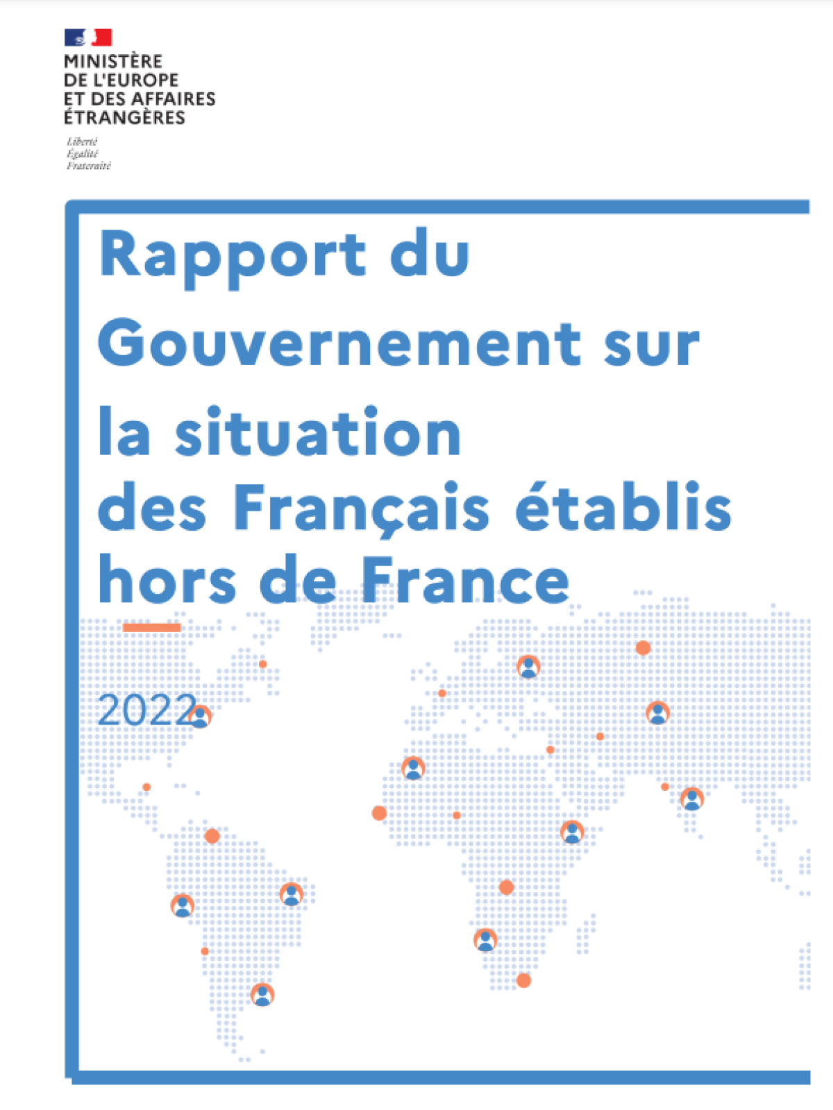 Rapport du Gouvernement sur la situation des Français établis hors de France 2022 Date de publication : 2022 lorem ipsum Plan du rapport Introduction : Évolution de la population française à l’étranger - page 11I. L’administration des Français hors de France - page 22II. La protection et l’action sociale - page 60III. La sécurité des Français établis hors de France - page 81IV. Le réseau d’enseignement français à l’étranger - page 102V. La coopération internationale dans les domaines judiciaire, fiscal et social - page 117VI. Le soutien aux entreprises françaises à l’étranger, à l’attractivité économique et à la mobilité - page 147Annexes - 173 Document Consulter le rapport du gouvernement Rapport du Gouvernement sur la situation des Français établis hors de France - 2022 PDF - 34 641.7 KB