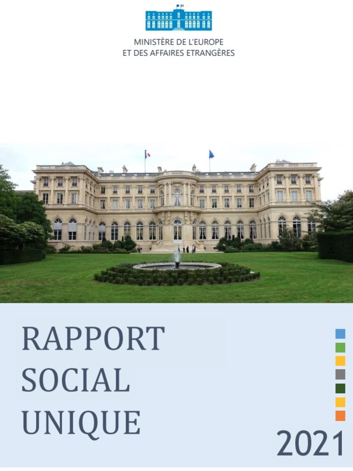 Rapport social unique 2021 du ministère de l’Europe et des Affaires étrangères Travailler au ministère Date de publication : 07 mai 2021 Dernière mise à jour le : 12 février 2026 Rapport social unique 2021 du ministère de l’Europe et des Affaires étrangères Télécharger le rapport social unique 2021 PDF - 4 951.3 KB