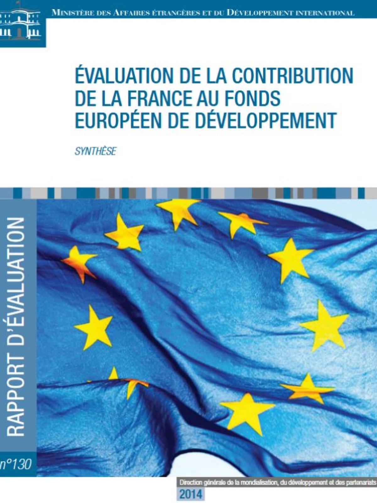 Évaluation de la contribution de la France au Fonds européen de développement Développement Date de publication : 2014 Dernière mise à jour le : 06 février 2026 La direction générale de la mondialisation, du développement et des partenariats (DGM) du ministère des Affaires étrangères et du Développement international (MAEDI) a décidé de mener l’évaluation de la contribution de la France au Fonds européen de développement (FED). Évaluation de la contribution de la France au Fonds européen de développement (novembre 2014) Télécharger la synthèse PDF - 736.5 KB