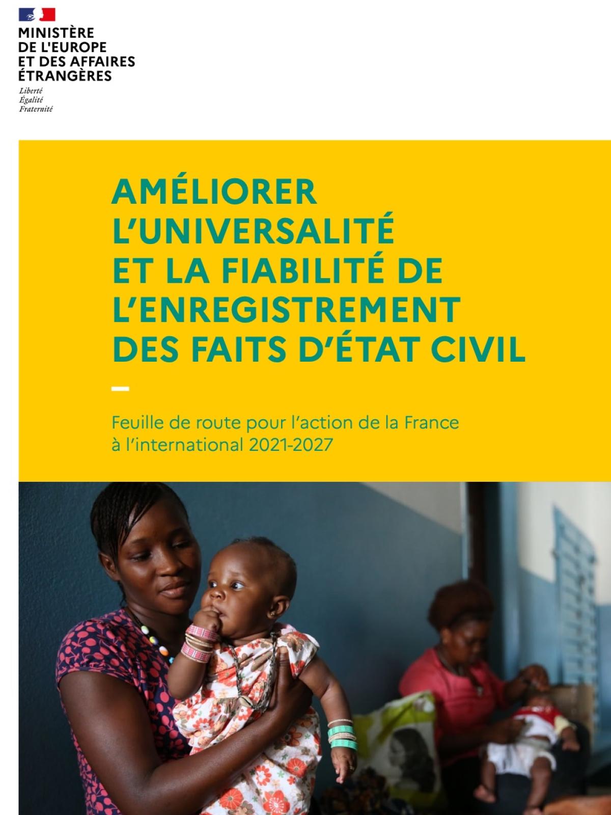 Feuille de route pour l’action de la France à l’international 2021-2027 - Améliorer l’universalité et la fiabilité de l’enregistrement des faits d’état civil Affaires consulaires Date de publication : 07 mai 2025 Dernière mise à jour le : 06 février 2026 Dans le monde, plus d’un milliard de personnes n’ont pas de preuve d’identité juridique et voient ainsi leur vie durablement affectée. L’état civil constitue en effet un prérequis pour l’accès aux droits sociaux et économiques, tels que l’éducation ou la santé, mais aussi civils et politiques, à l’image du droit de vote. Ces individus sont également vulnérables face à la marginalisation, à la discrimination et aux diverses formes d’exploitation, en particulier les enfants sans identité. Par ailleurs, un système d’enregistrement d’état civil fiable permet l’établissement de statistiques démographiques et sanitaires. C’est pour cela qu’il constitue un levier pour le développement socio-économique d’un pays et sa gouvernance et s’avère un outil essentiel pour l’Agenda 2030 et l’atteinte des Objectifs de développement durable. Si des avancées importantes ont été réalisées ces dernières années en matière de renforcement des systèmes d’état civil et d’enregistrement des naissances, plusieurs pays accusent un retard toujours préoccupant ; c’est notamment le cas en Afrique subsaharienne. Considérant la place centrale de l’état civil dans le processus de développement, la France s’est dotée d’une feuille de route pour son action internationale en la matière sur la période 2021-2027. Elle s’articule autour de 3 approches complémentaires : une approche fondée sur les droits humains, centrée sur l’accès à l’identité juridique comme condition d’accès aux droits, notamment pour les filles et les femmes ; une approche intégrée, permettant d’aborder la problématique dans toutes ses dimensions et de l’articuler avec différents secteurs et outils (en particulier les identifiants nationaux, voire la biométrie) pour catalyser les résultats ; une approche universelle et structurante, en vue de favoriser l’accessibilité de l’état civil à toutes les populations, de l’enfance à l’âge adulte et sur tous les territoires, du national au local. Après plus de deux ans de mise en œuvre, le bilan est positif. Les différents services, ambassades et opérateurs du MEAE se sont progressivement saisis des questions d’accès à l’identité, à travers une diversité d’angles (genre, éducation, santé, numérique, réfugiés et déplacés, décentralisation, etc.) et de partenariats. La France reste fortement mobilisée pour accroître la visibilité politique de ces enjeux, cruciaux pour le développement et l’accès aux droits. Documents Télécharger la feuille de route pour l'action de la France à l'international en matière d'état civil PDF - 384.4 KB Télécharger le suivi de la feuille de route pour l'action de la France à l'international en matière d'état civil PDF - 109.9 KB