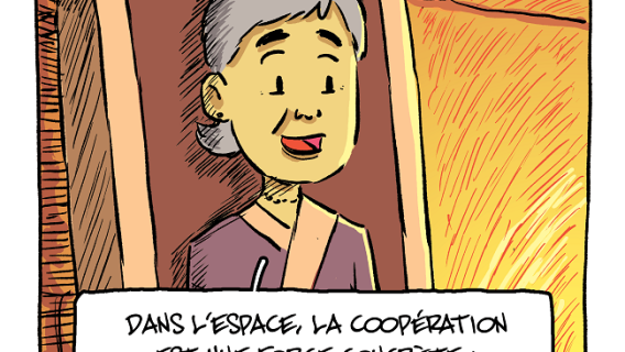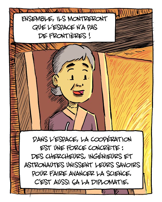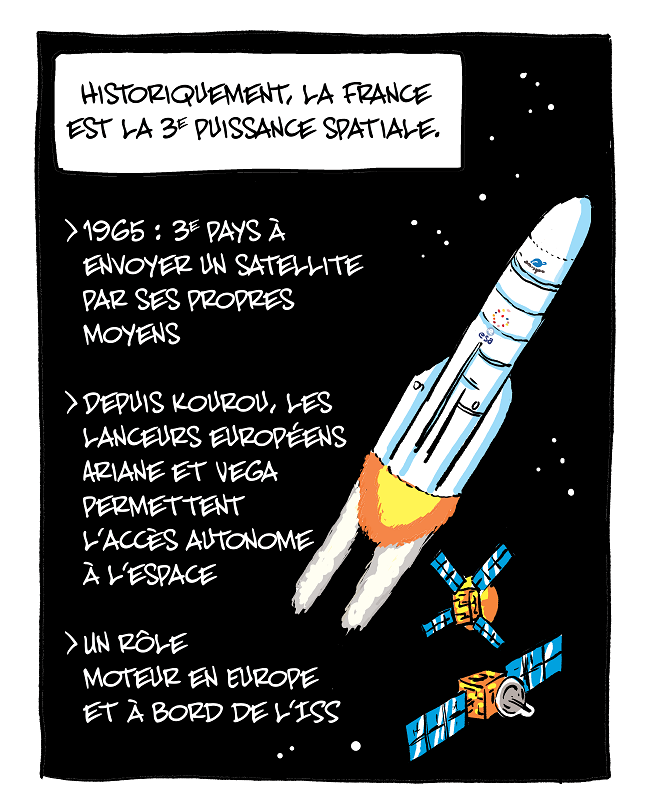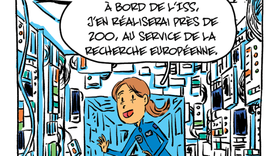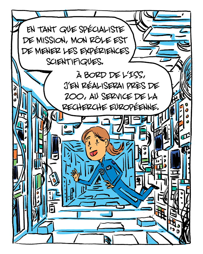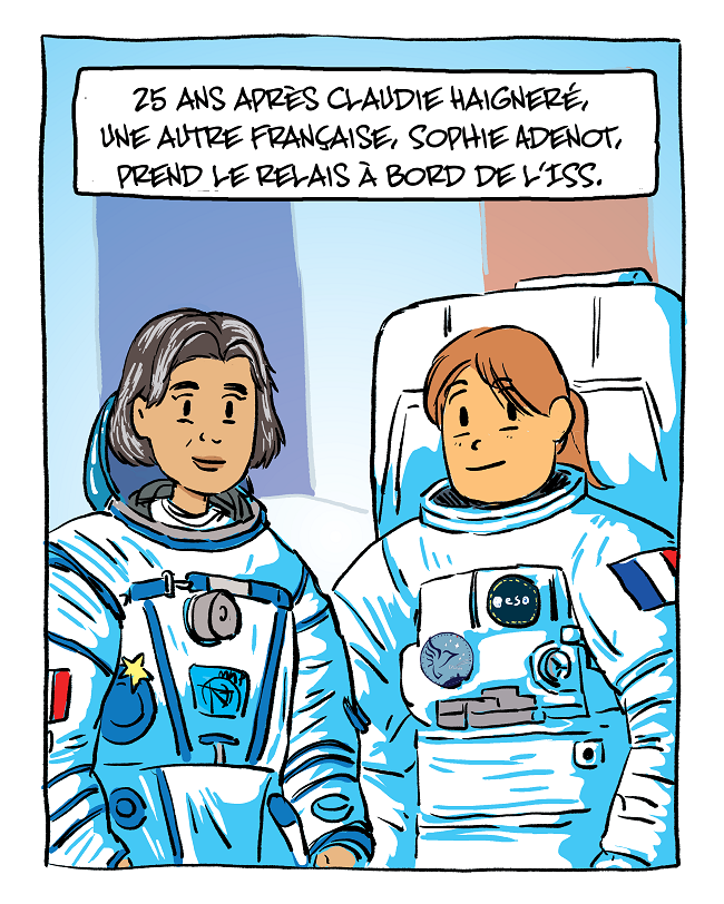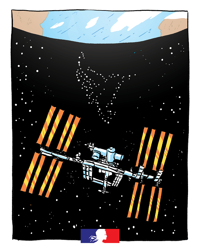 Le voyage de Sophie Adenot à bord de l’ISS raconté en BD Diplomatie scientifique Spatial Actualité Publié le : 16 février 2026 Mis à jour le : 09 mars 2026 À l’occasion du décollage de Sophie Adenot vers l’ISS, le 13 février 2026, le ministère de l’Europe et des Affaires étrangères a souhaité raconter en 18 planches illustrées ce départ hautement symbolique de la coopération européenne. Historiquement, la France est la troisième puissance spatiale mondiale. Dès 1965, elle devient le troisième pays à placer un satellite en orbite par ses propres moyens. Aujourd’hui encore, elle joue un rôle moteur au sein de l’Europe spatiale et contribue activement aux missions menées à bord de l’ISS. La coopération spatiale européenne se traduit par des programmes scientifiques concrets, comme Copernicus, programme d’observation de la Terre de l’Union européenne. Depuis le Centre spatial guyanais de l’Agence spatiale européenne à Kourou, les lanceurs Ariane et Vega incarnent également cette dynamique collective. Chercheurs, ingénieurs et astronautes unissent leurs expertises pour faire progresser la science, renforcer l’innovation et illustrer la vitalité de la diplomatie scientifique européenne. Cette bande dessinée a été entièrement réalisée en interne, au sein du studio création de la Direction de la communication et de la presse. Le voyage de Sophie Adenot à bord de l’ISS raconté en BD Fermer Le voyage de Sophie Adenot à bord de l’ISS raconté en BD