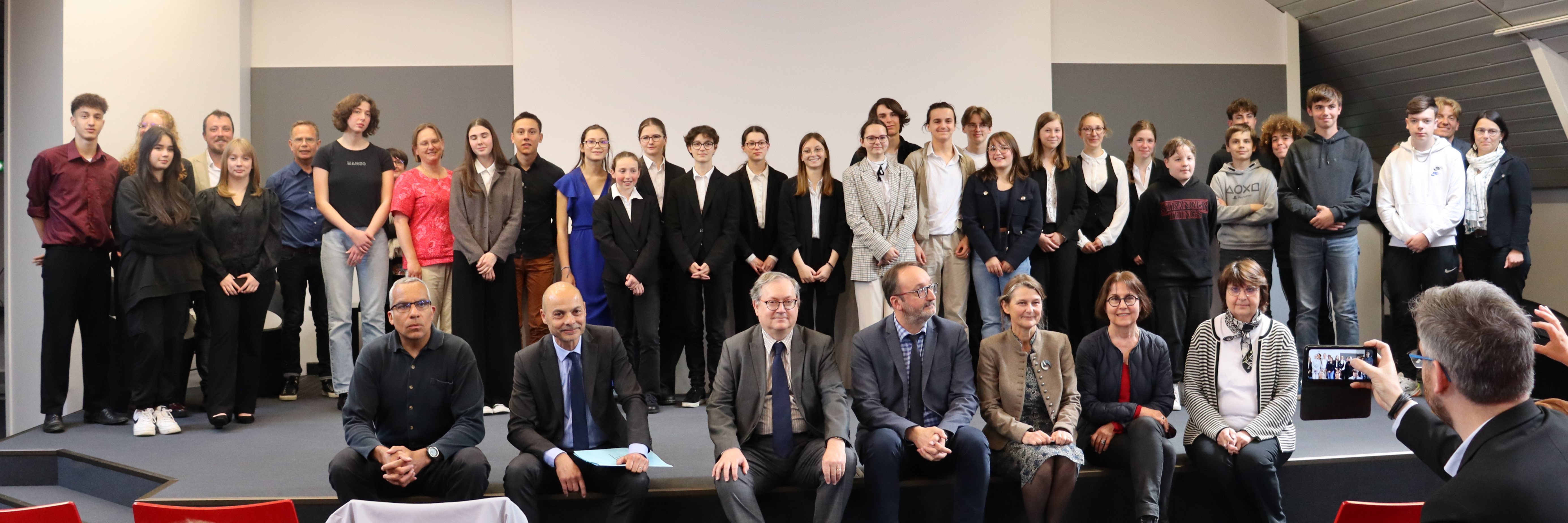 Les lauréats du concours des jeunes ambassadeurs et ambassadrices 2022-2023 Archives diplomatiques Actualité Publié le : 08 juin 2023 Mis à jour le : 05 janvier 2026 Les finalistes du concours ont été distingués par les jurys d’Ile-de-France et des Pays-de-la-Loire, les 1er juin et 12 mai derniers. Félicitations aux lauréates et lauréats, aux équipes pédagogiques ainsi qu’à l’ensemble des élèves et établissements ayant pris part au projet ! « En France, fin mars 1792, les partisans de la guerre contre l’Autriche pèsent de plus en plus à l’Assemblée nationale et au gouvernement. Les représentants de la Grande-Bretagne, de l’Autriche et de la Prusse en poste à Paris se réunissent pour envisager l’évolution de leurs relations avec la France. Vous imaginez et mettez en scène la conversation informelle des trois diplomates, qui expriment leur point de vue sur les derniers développements de la Révolution et sur l’attitude de leurs États face à la France et à la guerre qui vient. » C’est le défi que devaient relever les candidats d’Ile-de-France et des Pays-de-la-Loire. Après un travail préparatoire basé sur les documents originaux du ministère de l’Europe et des affaires étrangères et une visite des Archives diplomatiques, les élèves ont imaginé et mis en scène ce discours. Recherche, qualité de l’argumentation et force de conviction ont été valorisés par le jury du concours. Le prochain concours proposera aux élèves un travail autour des Jeux Olympiques de Mexico, en 1968. Réception à l’hôtel de la Ministre, 5 juillet 2023 Les collégiens et lycéens lauréats du concours des jeunes ambassadeurs et ambassadrices 2022-2023 ont été reçus le 5 juillet 2023 au Quai d’Orsay par Caroline Ferrari, Secrétaire générale adjointe du ministère de l’Europe et des Affaires étrangères. Découvrez le reportage complet. Pays-de-la-Loire, 12 mai 2023 La finale s’est déroulée à Nantes avec la participation d’une centaine d’élèves et d’enseignants. Le jury était présidé par M. Didier Le Bret, ministre plénipotentiaire, coordinateur à la direction générale de la mondialisation, de la culture, de l’enseignement et du développement international. Collèges 1er prix Collège Chevreul (Angers, 49), Capucine Le Ru, Apolline Foucher, Oriane Lleonart et Bertille Coraboeuf. Professeurs : Mme Pithon-Beaumard et M. Lavergne. 2e prix Collège Golfe des Pictons (L’Île-d’Elle, 85), Clément Naudon, Léandre Robin et Lucas Fonteneau. Professeur : M. Hurel. 3e prix Collège Pierre Mendès-France (Saumur, 49), Anthonin Carteaux, Kylian Coupé, Luka Simonin.Professeurs : Mmes Bivaud et Malo, M. Mounier. Lycées 1er prix Lycée Joachim du Bellay (Angers, 49), Anthime Laurent, Anouck Poschwitz et Anne Sophie Conrad-Winkenhöker. Professeur : Mme Masson. 2e prix Lycée Bellevue (Le Mans, 72), Djamel Fermigier-Dumortier, Victor Le Berre et Jean-Esteban Lion, Fostine Pauloin. Professeur : M. Baraille. 3e prix Externat Chavagnes (Nantes, 44), Ethel Patron, Florentine Aymer et Rose Mayol. Professeur : M. Perraud. Lycées professionnels 1er prix Lycée Jean Monnet (Les Herbiers, 85), Romane Blaineau, Louane Bouchet et Sophie Barreteau . Professeur : Mme Poirier. 2e prix Lycée Carnot-Bertin (Saumur, 49), Mahea Herranz, Lena Llorente et Ismaël Tamimi Dirai. Professeurs : Mme Genin et M. Barré. Ile-de-France, 1er juin 2023 Lycées 1er prix Lycée Jean Macé (Vitry sur Seine, 94), Dilan Kilicalp, Jade Itzhaki Cotilon, Lou Marty, Henri Giacomo, Julie Leal. Professeur : M. Youns Zraezae. 2e prix Lycée Louis Le Grand (Paris, 75), Malo Le Gouellec-Yang, Clémence Trohel, Marion Hezard, Victor Zhang, Samuel Cerf. Professeur : Mme Catherine Cimaz Leroy. 3e prix Lycée Louis Le Grand (Paris, 75), Elisa Vigneron, Charlotte Rembauville-Nicolle, Zélie Helion-Seguret. Professeur : Mme Catherine Cimaz Leroy.