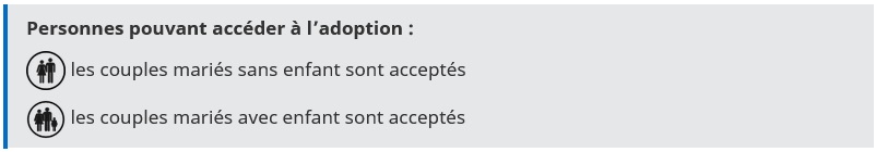 Adoption - Autres pays - Mali Suspension des adoptions internationales au Mali Mali Adoption internationale Publié le : 26 novembre 2025 Mis à jour le : 03 avril 2026 Par arrêté daté du 25 septembre 2023, publié au Journal officiel le 27 septembre 2023, la France a suspendu les adoptions internationales au Mali. La nécessité de faire prévaloir l’intérêt supérieur de l’enfant, principe reconnu par la Convention internationale des droits de l’enfant de 1989 et par la Convention de La Haye du 29 mai 1993 sur l’adoption internationale, a conduit la France à prendre cette décision. Le maintien de l’adoption internationale est désormais déconseillé dans les situations d’urgence ou lorsque les conditions de sécurité ne sont pas réunies. La France a ainsi été amenée à suspendre l’adoption internationale lors de cas analogues. Cette décision n’affecte pas les familles ayant déjà obtenu une décision d’apparentement avant la date de la suspension et qui pourront mener la procédure d’adoption jusqu’à son terme. Une seule famille se trouve dans cette situation pour le cas du Mali. Consulter l'arrêté daté du 25 septembre 2023. AVERTISSEMENT : Interdiction des adoptions individuelles La loi n° 2022-219 du 21 février 2022 visant à réformer l’adoption est entrée en vigueur en France. Parmi les changements introduits par ce texte, les adoptions internationales par démarche individuelle sont désormais prohibées. Les informations ci-dessous concernent uniquement les adoptions internationales qui ont pu intervenir avant l’interdiction des adoptions individuelles entrée en vigueur le 23 février 2022. Consultez le communiqué de la MAI La Convention de La Haye du 29 mai 1993 sur la protection des enfants et la coopération en matière d’adoption internationale est entrée en vigueur au Mali le 1er septembre 2006. Communiqué (19.12.2012) : La Mission de l’Adoption Internationale souhaite informer les candidats à l’adoption au Mali que, par une circulaire en date du 5 décembre 2012, le ministère de la Justice a invité les magistrats à appliquer le nouveau Code des personnes et de la famille, et notamment son article 540 qui restreint l’adoption internationale aux seuls ressortissants maliens. Cette information confirme ainsi la position précédemment exprimée par les autorités maliennes . Cf. communiqué de la MAI du 25.10.2012 : Le Service de l'Adoption Internationale souhaite informer les candidats à l'adoption que lesautorités maliennes viennent de faire part de l'entrée en vigueur effective de la loi n°2011-087, adoptée le 30 décembre 2011, portant Code des Personnes et de la Famille.L'article 540 de cette nouvelle législation prévoit que désormais seuls les couples ou lespersonnes célibataires de nationalité malienne n'ayant ni enfant ni descendant légitime, etâgés d'au moins 30 ans, sont autorisés à adopter un enfant malien.L'adoption internationale sera dès lors limitée aux seuls ressortissants maliens résidant àl'étranger.) Télécharger le communiqué du 03.11.2011 PDF - 34.6 KB Télécharger le communiqué relatif à la visite de M. Alou Barry PDF - 32.1 KB I - Exigences du droit local Transcription Fermer la transcription Les couples mariés sans enfant sont acceptés Les couples mariés avec enfant sont acceptés 1. Le cadre juridique de l’adoption Code de la Parenté (ordonnance N° 36, CMLN du 31 juillet 1973) Loi n°62.18 ANRM du 03.02.62 relative à la nationalité 2. Qui peut adopter ? Un couple n’ayant pas d’enfant légitime, à condition que l’un des époux ait au moins trente ans, Un(e) célibataire, divorcé(e), ou veuf(ve) sans enfant, âgé(e) d’au moins trente ans. 3. Quels enfants peuvent être proposés à l’adoption internationale Sont adoptables les enfants âgés de moins de cinq ans, abandonnés sans filiation connue.Avertissement : seuls les enfants abandonnés sans filiation étant adoptables, l’adoption-filiation est impossible dans les situations intrafamiliales. Seule est possible l’adoption-protection, qui produit les effets d’une délégation d’autorité parentale et ne relève pas de la compétence de la MAI. 4. Qui peut vous accompagner dans votre démarche ? En application de la Convention de La Haye, la transmission des dossiers de demande d’adoption à l’Autorité Centrale malienne pour l’adoption devra être effectuée par l’Agence Française de l’Adoption (AFA) dont les coordonnées sont précisées en fin de document. II - Type de décision 1. Forme de la décision Il est important de noter qu’une décision d’adoption-protection n’est pas assimilable en droit français à une adoption mais à une simple mesure de tutelle ou de délégation de l’autorité parentale. C’est pourquoi ce type de décision n’est pas visé dans ce document. Seuls les enfants bénéficiant d’une décision d’adoption-filiation pourront entrer en France au titre de l’adoption internationale.La décision prononcée par les autorités locales est une décision judiciaire. 2. Effets de la décision Irrévocabilité, Création d’un lien de filiation entre l’enfant et la famille adoptive, L’adopté prend le nom de l’adoptant. III - Procédure 1. Constitution du dossier en France Voir site Internet de l’AFA : www.agence-adoption.fr Tous les documents sauf l’extrait d’acte de naissance pour chaque membre de la famille, l’extrait d’acte de mariage et le certificat de nationalité, devront être légalisés auprès du Bureau des légalisations du Ministère des Affaires étrangères puis auprès du consulat du Mali en France. 2. Obtention du visa de l’enfant adopté Le dossier à constituer en vue de l’obtention du visa d’entrée en France de l’enfant comporte les documents suivants en original, légalisés selon la réglementation en vigueur (les originaux seront rendus aux adoptants) : 3 formulaires de demande de visa long 