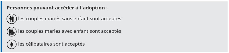 Adoption - Autres pays - Ouzbékistan AVERTISSEMENT : Interdiction des adoptions individuelles Suite à l’interdiction des adoptions individuelles entrée en vigueur le 23 février 2022, et en l’absence d’opérateur autorisé et habilité pour l’adoption en Ouzbékistan, il n’est pas possible d’adopter un enfant dans ce pays. Ouzbékistan Adoption internationale Publié le : 27 novembre 2025 Mis à jour le : 03 avril 2026 Consultez la liste des pays ouverts à l’adoption Les informations ci-dessous concernent uniquement les adoptions internationales qui ont pu intervenir avant l’interdiction des adoptions individuelles entrée en vigueur le 23 février 2022. Avant propos : Exigences du droit français Avertissement : L’adoption internationale en Ouzbékistan est légalement possible.Toutefois : les enfants adoptables y sont très peu nombreux ; l’adoption internationale est subsidiaire ; les autorités privilégient, en règle générale, les candidats ayant un lien familial avec le pays. Dans ces conditions, une procédure d’adoption menée dans ce pays peut être longue, difficile et sans garantie quant à son aboutissement. Nombre d’enfants adoptés depuis 1998 : 2 Transcription Fermer la transcription Les couples mariés sans enfant sont acceptés Les couples mariés avec enfant sont acceptés Les célibataires sont acceptés 1 - Le cadre juridique de l’adoption Code de la famille de la République d’Ouzbékistan, art 151-167 ; art 237 Règlement-annexe n°3 au décret du Cabinet des Ministres n° 171 du 12 avril 1999. 2 - Qui peut adopter ? Toute personne majeure peut avoir la qualité d’adoptant, sauf : les personnes dont l’incapacité ou la capacité restreinte est reconnue par un tribunal, les couples mariés dont l’incapacité ou la capacité restreinte de l’un des membres est reconnue par un tribunal, les personnes déchues de l’autorité parentale ou dont l’autorité parentale a été limitée par un tribunal, les personnes déchues d’une responsabilité tutorale pour cause d’infraction à leurs obligations légales, les personnes dont un précédent acte d’adoption a été annulé par un tribunal, les personnes dont l’état de santé ne permet pas d’assurer l’autorité parentale. Les couples ne peuvent adopter que s’ils sont mariés. Le consentement du conjoint est indispensable. 3 - Quels enfants peuvent être proposés à l’adoption internationale ? L’enfant doit avoir été proposé à l’adoption nationale et être enregistré depuis plus de trois mois auprès des unités administratives et territoriales dont il dépend. L’enfant doit avoir été également inscrit dans la base de donnée centralisée, gérée par le ministère de l’Éducation d’Ouzbékistan. Il est possible d’adopter une fratrie ou plusieurs enfants en même temps. L’adoption de l’enfant du conjoint de nationalité ouzbek est possible. 4 - Qui peut vous accompagner dans votre démarche ? Le recours à un intermédiaire : au cours d’un processus de sélection d’un enfant dans un orphelinat, en vue d’effectuer la remise de l’enfant à des adoptants, est strictement interdit et passible de poursuites pénales. II - Type de décision 1 - Forme de la décision La décision prononcée par les autorités ouzbeks est une décision administrative. 2 - Effets de la décision en Ouzbékistan création d’un lien de filiation entre l’enfant adopté et la famille adoptive ; rupture des liens de filiation entre l’enfant adopté et sa famille biologique. l’adoption plénière ouzbek peut être annulée ou révoquée, dans l’intérêt de l’enfant, à la demande des parents naturels, du tuteur ou du Procureur ; les adoptants peuvent demander à l’autorité compétente une modification des nom et prénom de l’enfant ainsi que leur mention en qualité de père et de mère sur l’acte de naissance reconstitué. III - Procédure La famille candidate doit constituer un dossier complet, dans les formes requises par les autorités ouzbeks. Ce dossier doit être adressé aux organismes de tutelle locaux (orphelinats, maisons spécialisées). Avertissement : la République d’Ouzbékistan n’étant pas partie à la convention de La Haye du 5 octobre 1961, la légalisation des documents devra être effectuée auprès du consulat d’Ouzbékistan le plus proche. 1 - Procédure locale L’adoption d’enfants ouzbeks par des étrangers ne peut avoir lieu que si aucune autre solution n’a pu être trouvée pour l’enfant dans son pays. Les enfants adoptables doivent avoir été enregistrés sur une base de données spécifique, gérée au niveau local, puis central par le ministère de l’Éducation d’Ouzbékistan. Cet enregistrement permet d’avoir l’assurance que toutes les solutions au niveau local ont été recherchées et que le principe de subsidiarité a bien été respecté. Toutefois, en pratique, l’adoption internationale est quasiment inexistante. 2 - État civil Aucun changement de l’état civil de l’enfant ne peut être envisagé sans que l’organisme de tutelle n’y ait consenti. Cette indication doit figurer obligatoirement dans la décision de l’organisme prononçant l’adoption. Le changement des nom, prénom et patronyme d’un enfant âgé de 10 ans ou plus nécessite son accord préalable. 3 - Obtention du visa de l’enfant adopté Le dossier à constituer en vue de l’obtention du visa d’entrée en France de l’enfant doit comporter tous les documents suivants : le passeport de l’enfant, revêtu des autorisations de sortie du territoire ; 2 photos d’identité couleur de l’enfant ; L’équivalent de 15 € dans la monnaie locale, correspondant au coût du visa ; les coordonnées complètes du traducteur ou de l’accompagnateur des adoptants ; une copie de l’agrément, incluant la notice et, le cas échéant, les modifications ; Les documents suivants doivent être également présenté