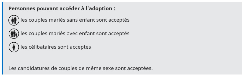 Adopter au Brésil AVERTISSEMENT : Interdiction des adoptions individuelles Conformément à la règlementation en vigueur, les adoptions au Brésil doivent être accompagnées par un organisme dûment agréé dans les deux États ou par l’Agence Française de l’Adoption. Brésil Adoption internationale Publié le : 06 novembre 2025 Mis à jour le : 27 février 2026 La Convention de La Haye du 29 mai 1993 sur la protection des enfants et la coopération en matière d’adoption internationale est entrée en vigueur au Brésil le 1er juillet 1999. Avant propos : Exigences du droit français I - Exigences du droit local Le Brésil est une République fédérative composée de 26 Etats fédérés et du district fédéral. Chaque Etat fédéré dispose d’une autorité centrale pour l’adoption (Commission Etatique Judiciaire pour l’Adoption : CEJA. Dans certains Etats fédérés, lorsque la CEJA traite de l’adoption internationale, elle prend la dénomination de CEJAI). Les différentes CEJA sont placées sous l’égide de l’Autorité Centrale Fédérale, à Brasilia. 1. Le cadre juridique de l’adoption au Brésil Convention de La Haye du 29 mai 1993 sur la protection des enfants et la coopération en matière d’adoption internationale ; Loi n° 8069 du 13 juillet 1990 relative au statut de l’enfant et de l’adolescent ; Chapitre III article 12 de la Constitution de la République Fédérative du Brésil - Code de la nationalité brésilienne ; Décret 5491 du 18 juillet 2005, modifié par le Décret 5947/2006, réglementant l’activité des organismes étrangers et nationaux d’adoption internationale ; Loi n°12.010 du 3 août 2009 modifiant la loi du 13 juillet 1990 relative au statut de l’enfant et de l’adolescent. 2. Qui peut adopter ? Les couples mariés avec ou sans enfant sont acceptés sans condition de durée de mariage. Les célibataires sont acceptés. Les candidats à l’adoption doivent être âgés de 18 ans au moins. La différence d’âge entre les candidats et l’enfant doit être au moins de 16 ans et ne peut excéder 50 ans. 3. Quels enfants peuvent être proposés à l’adoption internationale ? Peuvent faire l’objet d’une adoption internationale : Les enfants sans filiation connue, Les enfants orphelins, Les enfants déclarés judiciairement abandonnés, Les enfants dont les parents ou les représentants légaux ont valablement consenti à l’adoption, Si l’adopté est âgé de plus de 12 ans, il doit consentir personnellement à son adoption. Remarques : Les enfants adoptables se trouvent le plus souvent dans des institutions publiques, parfois dans des institutions privées agréées par un État fédéré. En vertu d’une décision des CEJAI prise en novembre 2007, les enfants proposés à l’adoption internationale sont désormais âgés de 5 ans au moins, sauf dans le cas de fratries d’âges variés. Il est à noter que dans l’Etat de Rio de Janeiro, les enfants proposés à l’adoption internationale sont âgés de 9 ans au moins, sous la même réserve de fratries d’âges variés. L’évolution de l’adoption internationale au Brésil est marquée par la prédominance de propositions de fratries de 2 à 4 enfants. Les enfants proposés seuls sont généralement âgés de 9 ans au moins. 4. Qui peut vous accompagner dans votre démarche ? En application de la Convention de La Haye, les dossiers des candidats à l’adoption doivent obligatoirement être transmis à l’Autorité centrale d’un État fédéré brésilien par un organisme autorisé : en France, un Organisme Autorisé et habilité pour l’Adoption (OAA). Aucune demande ne peut être déposée directement auprès d’une institution locale (crèche, orphelinat, autorité centrale…). L’adoption individuelle est interdite au Brésil. Pour toute information complémentaire concernant les opérateurs de l’adoption internationale, vous pouvez consulter la rubrique « Organismes agréés pour l’Adoption (OAA) ». II - Type de décision 1. Forme de la décision La décision prononcée par les autorités locales est une décision judiciaire. 2. Effets de la décision d’adoption au Brésil Création d’un lien de filiation entre l’enfant et sa famille adoptive. Rupture définitive des liens de filiation entre l’enfant et sa famille biologique. L’adoption est irrévocable. L’enfant ne perd pas sa nationalité d’origine. III - Procédure 1. Constitution du dossier en France Voir le site internet de l’OAA accrédité. 2. Procédure locale Avant tout déplacement veillez à consulter la Fiche Conseils aux Voyageurs Le Brésil est une République fédérative composée de 27 entités qui ont, chacune, leur propre interprétation des textes fédéraux et leurs propres exigences en matière de gestion des dossiers. Ce document présente les exigences de la loi fédérale. Les candidats pourront obtenir des informations concernant les spécificités de chaque État fédéré auprès de l’OAA qui aura retenu leur dossier. Les étapes de la procédure locale : Télécharger les étapes de la procédure locale au Brésil PDF - 244.2 KB La procédure brésilienne dure environ 2 à 3 ans à compter de la réception du dossier des candidats à l’adoption par le Tribunal du lieu de résidence de l’enfant adoptable. Les familles doivent prévoir de séjourner environ 2 mois sur place. Un stage de cohabitation d’une durée minimale de 30 jours doit s’effectuer sur le territoire brésilien. Il importe de veiller à ce que les accords à la poursuite de la procédure soient délivrés par les autorités brésiliennes compétentes et par la Mission de l’adoption internationale antérieurement au jugement d’adoption. Si cette étape n’est pas respectée, la procédure ne pourra pas bénéficier des dispositions de la Convention de La Haye. Les adoptants doivent récupérer les originaux de ces documents lors de leur séjour sur place. En effe