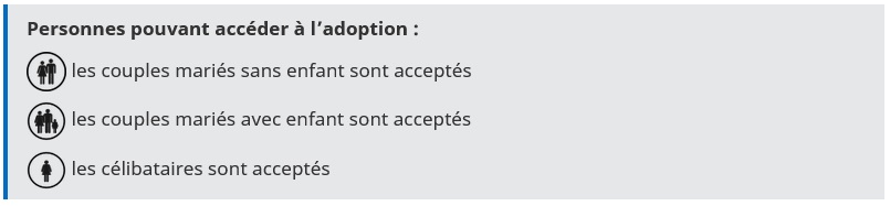 Adopter en Inde AVERTISSEMENT : Interdiction des adoptions individuelles Conformément à la règlementation en vigueur, les adoptions en Inde doivent être accompagnées par un organisme dûment agréé dans les deux États ou par l’Agence Française de l’Adoption. Inde Adoption internationale Publié le : 10 novembre 2025 Mis à jour le : 02 avril 2026 La Convention de La Haye du 29 mai 1993 sur la protection des enfants et la coopération en matière d’adoption internationale est entrée en vigueur en République de l’Inde le 1er octobre 2003. Avant propos : Exigences du droit français I - Exigences du droit local 1 - Le cadre juridique de l’adoption en Inde Convention de La Haye du 29 mai 1993 sur la protection des enfants et la coopération en matière d’adoption internationale. Loi sur la justice des mineurs (prise en charge et protection des enfants) - The Juvenile Justice (Care and Protection of Children) Act, 2015 (en remplacement de la même loi de 2000). Loi d’amendement sur la justice des mineurs (prise en charge et protection des enfants) - The Juvenile Justice (Care and Protection of Children) Amendment Act, 2021. Règlementation sur l’adoption (Adoption Regulations), 2017. Règlementation amendée sur l’adoption (Adoption (Amendement) Regulations), 2021 2 - Qui peut adopter ? Les candidats à l’adoption doivent être physiquement, mentalement et financièrement stables, et présenter la motivation nécessaire pour adopter un enfant. Les candidats à l’adoption peuvent être un couple hétérosexuel, marié depuis au moins deux ans, une personne célibataire ou une personne divorcée. La législation indienne n’autorise pas l’adoption aux couples de personnes de même sexe. Une femme célibataire peut adopter un enfant de l’un ou l’autre sexe mais un homme célibataire ne peut pas adopter une fille. Dans le cas d’un couple, le consentement des deux conjoints est requis. Lorsque le candidat à l’adoption est un couple, le cumul des âges des conjoints, au moment de l’inscription du dossier auprès des autorités indiennes ne doit pas être supérieur à :o 90 ans pour un enfant âgé d’au plus 4 anso 100 ans pour un enfant âgé de plus de 4 ans et jusqu’à 8 anso 110 ans pour un enfant âgé de plus de 8 ans et jusqu’à 18 ans. Lorsque le candidat à l’adoption est un célibataire, son âge, au moment de l’inscription du dossier auprès des autorités indiennes, ne doit pas être supérieur à :o 45 ans pour un enfant âgé d’au plus 4 anso 50 ans pour un enfant âgé de plus de 4 ans et jusqu’à 8 anso 55 ans pour un enfant âgé de plus de 8 ans et jusqu’à 18 ans. La différence d’âge entre l’enfant et l’un ou l’autre des parents adoptifs ne doit pas être inférieure à vingt-cinq ans. Par dérogation, aucun critère d’âge n’est applicable dans le cadre d’une adoption intrafamiliale ou d’une adoption d’enfant de conjoint. Les demandes d’adoption émanant de couples ayant trois enfants ou plus ne seront pas prises en considération, sauf dans le cas d’un enfant ayant des besoins spéciaux, d’un enfant difficile à placer, d’une adoption par un membre de la famille ou d’une adoption d’enfant de conjoint. 3 - Quels enfants peuvent être proposés à l’adoption internationale ? Critères juridiques d’adoptabilité : Les enfants sans filiation connue, orphelins ou abandonnés, ayant été déclarés adoptables par le Comité de protection de l’enfance - Child Welfare Comitee (CWC). Une fois déclaré adoptable, l’enfant est proposé à l’adoption par des citoyens indiens, pendant un délai de :o soixante jours, s’il est âgé de moins de 5 ans ;o trente jours, s’il est âgé de plus de 5 ans ou s’il a des frères ou sœurs ;o quinze jours, s’il est atteint d’un handicap mental ou physique. Passé ce délai, si aucun parent adoptif n’a été trouvé, l’enfant est proposé à l’adoption internationale. Par dérogation, les enfants « à besoins spécifiques » (souffrant d’un handicap physique ou mental, âgés de plus de 5 ans ou appartenant à une fratrie) sont proposés à l’adoption internationale à l’issue d’un délai de quinze jours suivant la déclaration d’adoptabilité. 4 - Qui peut vous accompagner dans votre démarche ? En application de la Convention de La Haye, les dossiers des candidats à l’adoption doivent obligatoirement être transmis à l’Autorité centrale indienne par un organisme accrédité en Inde, y compris en cas d’adoption intrafamiliale : en France, l’Agence française de l’adoption (AFA) ou un organisme français autorisé et habilité pour l’adoption (OAA). L’adoption privée est en conséquence strictement interdite en Inde et aucune demande ne peut être déposée directement auprès d’une institution locale (crèche, orphelinat, autorité centrale…). Toute adoption qui ne respecterait pas la procédure prévue par cette convention se heurterait à un refus de visa et risquerait de ne pas être reconnue en France. Avant de faire acte de candidature, il est indispensable de vérifier auprès des services de l’Aide sociale à l’enfance de votre département que l’OAA choisi a compétence pour intervenir dans ce département. Pour toute information complémentaire concernant les opérateurs de l’adoption internationale, vous pouvez consulter la rubrique « Organismes agréés pour l’Adoption (OAA) » et le site de l’AFA II - Procédure d’adoption 1- Constitution du dossier en France Les candidats à l’adoption ayant leur résidence habituelle en France doivent obtenir un agrément en vue d’adoption, délivré par le président du conseil départemental de leur domicile puis se tourner vers l’AFA ou un OAA. Si le dossier est accepté par l’opérateur, celui-ci établira un « rapport relatif aux requérants » qui sera transmis avec les pièces requises aux autorités indiennes. 2 - Procéd