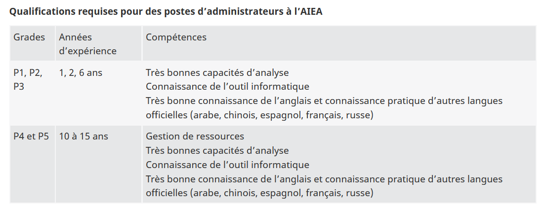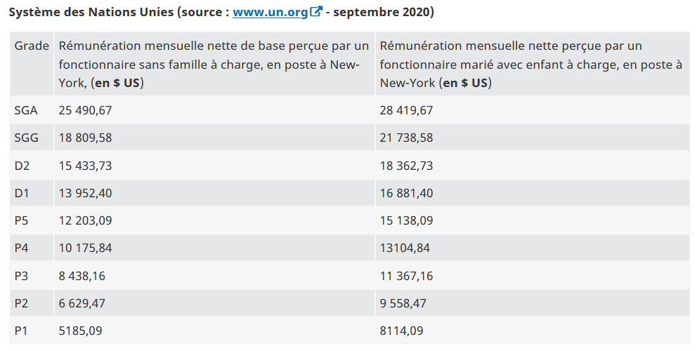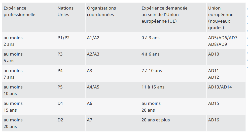 Pour consulter un autre tableau des équivalences approximatives des différents grades dans plusieurs organisations internationales, notamment les institutions financières internationales, cliquez ci-dessous :