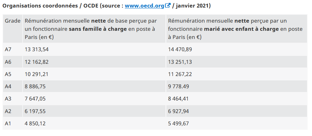 Les rémunérations dans les organisations internationales comportent différents éléments, qui varient d’un régime à l’autre. Certains paramètres de base sont cependant communs, à commencer évidemment par le traitement (ou salaire), certaines indemnités (éducation des enfants) ou la protection sociale (cotisation d’assurance maladie et vieillesse).
