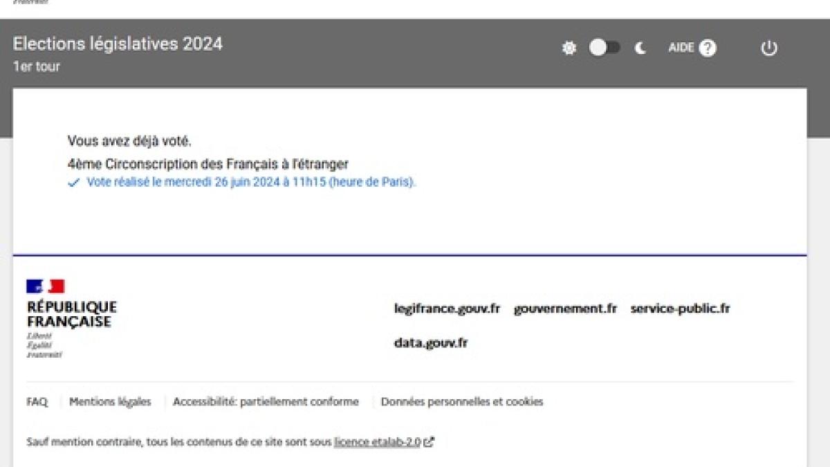 Voter deux fois étant impossible, vous pouvez vous reconnecter au portail de vote et ainsi vérifier le message qui s’affiche :